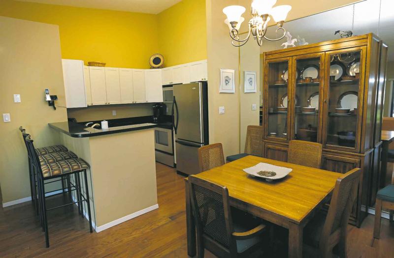 The moment you set foot in the open-concept great room area, those updates are very apparent. "All told, the outgoing owner put about $50,000 worth of work into updating the suite," said Single. "The kitchen was remodelled, new hardwoods were installed, and the main bath was redone."