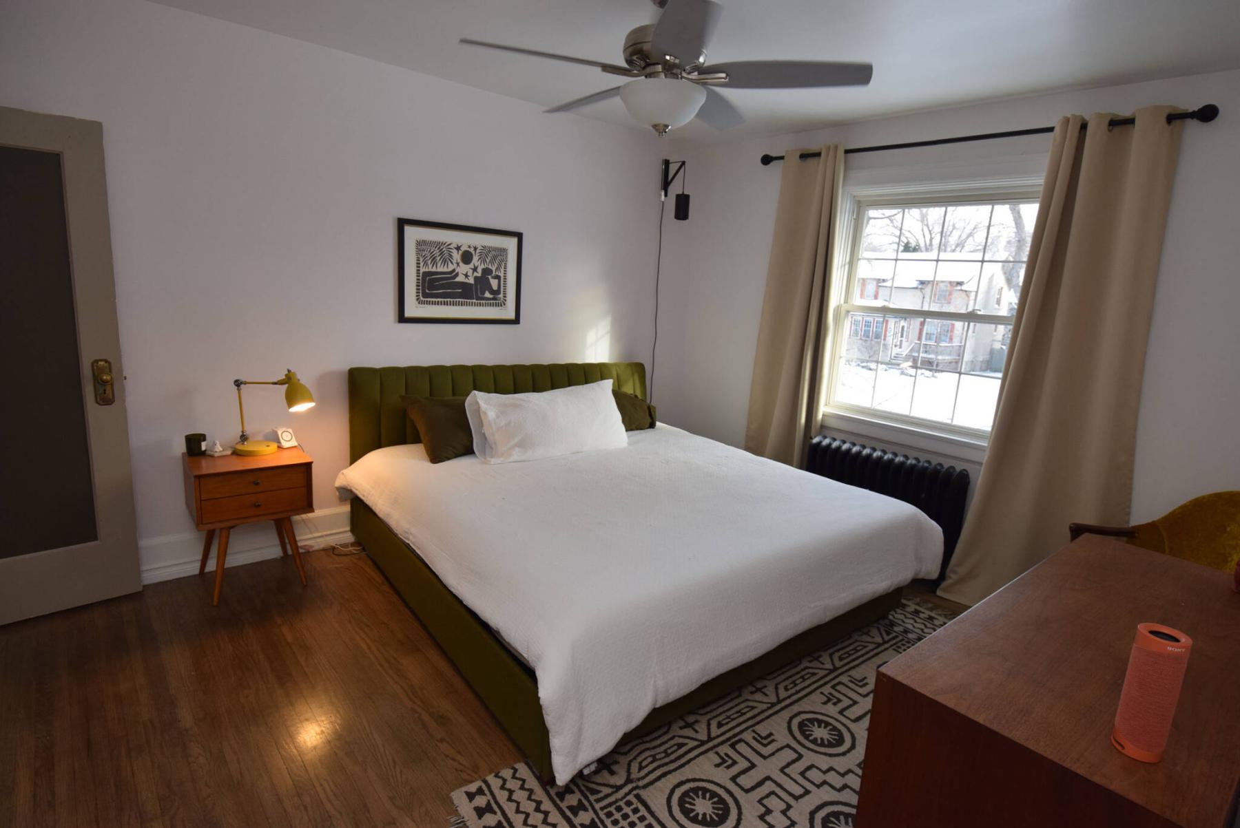 Spacious and naturally bright, the primary bedroom is a warm, relaxing retreat.