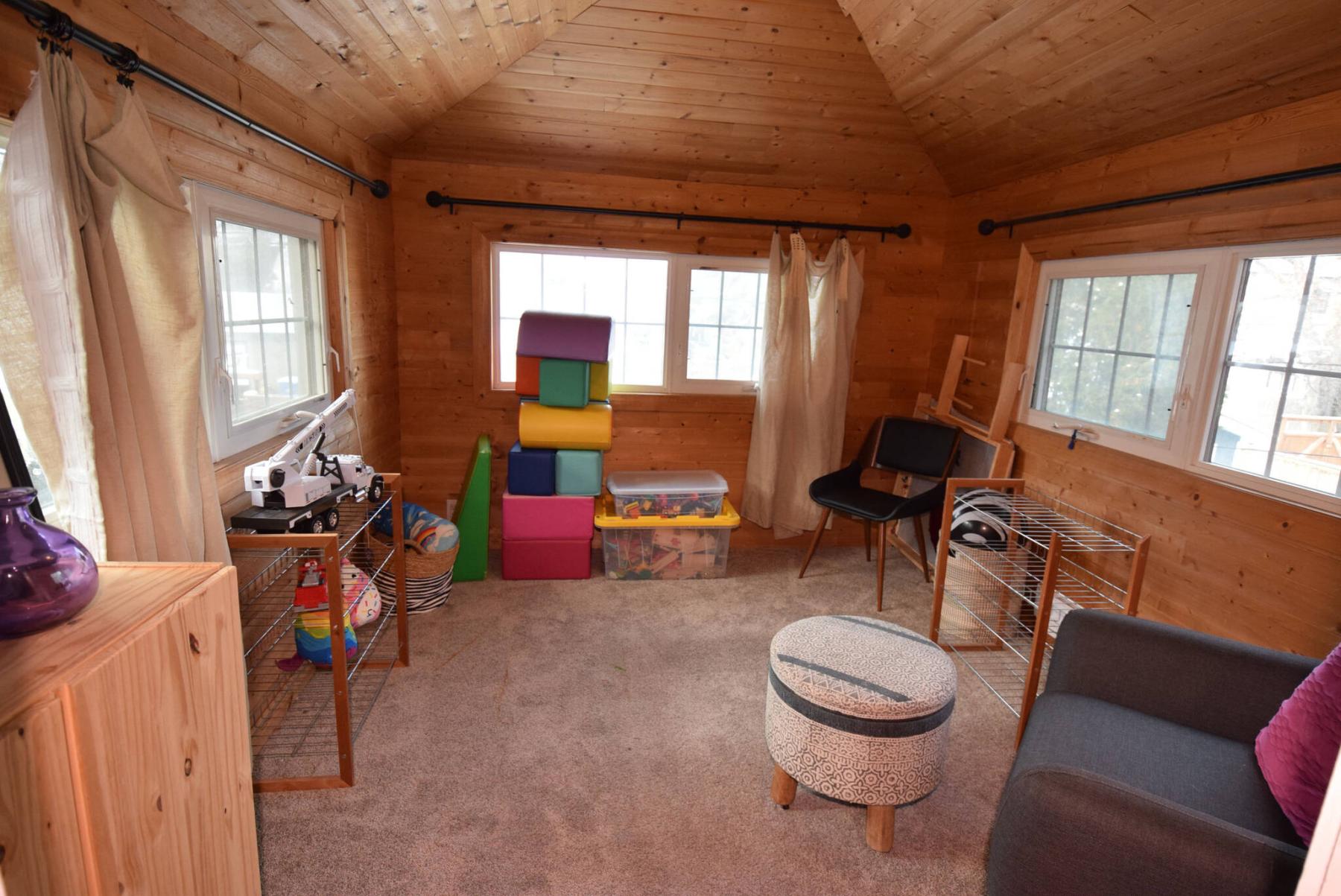 “It’s a cool space with a cedar ceiling that can be used as a sunroom, or as a playroom,” Mymryk says.