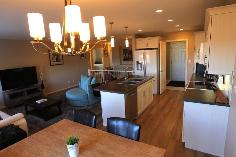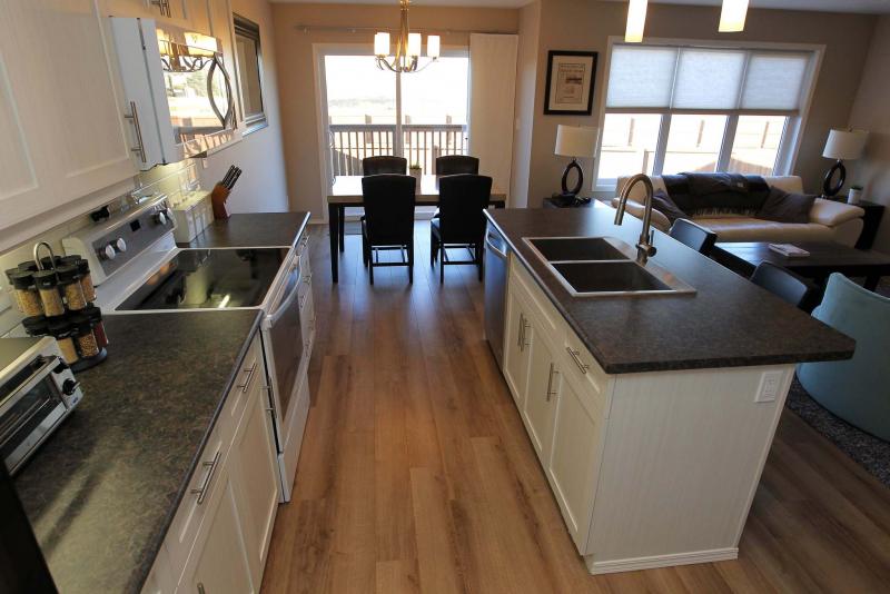 RESALE HOMES - 6 Prairieview Cove in Dugald, Manitoba. The realtor is Anders Frederiksen. Open concept kitchen dining and living room. View from the end of the kitchen. Nov 7, 2016