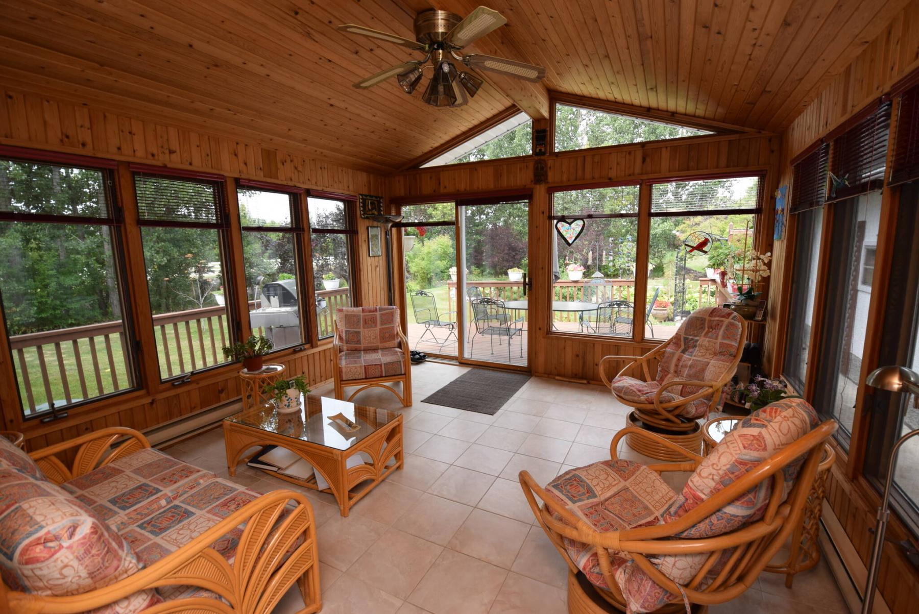 The four-season sunroom features a heated tile floor and offers an amazing backyard view.