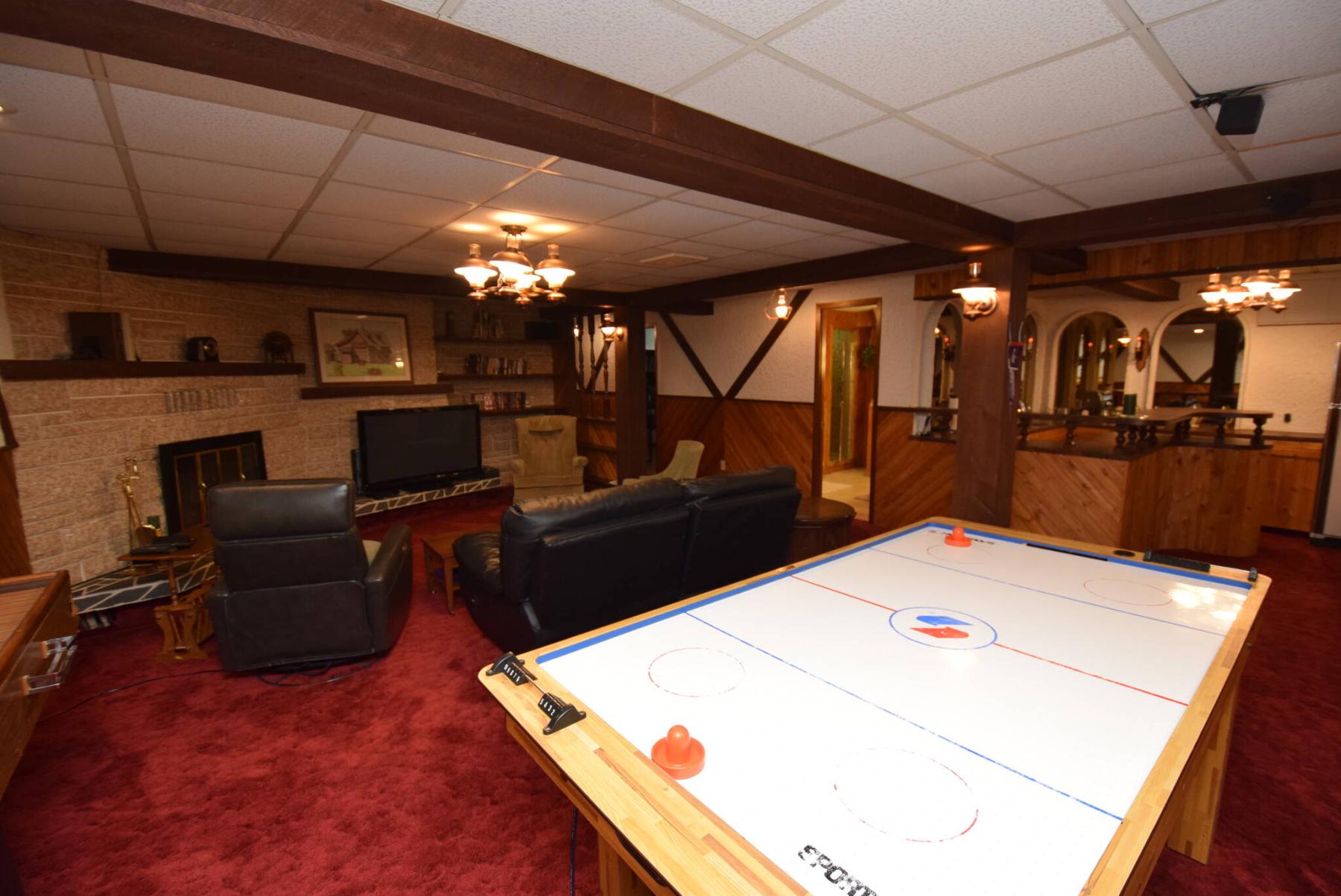 Equipped with a wood burning fireplace, media and games area and a wet bar, the spacious rec room is ready for any gathering.