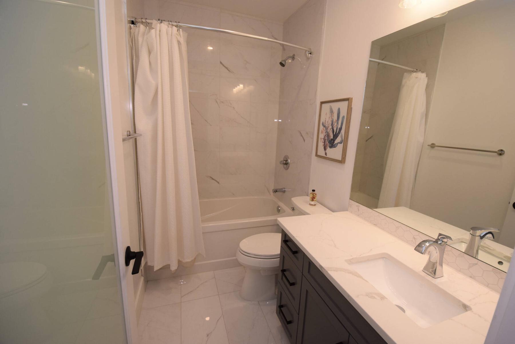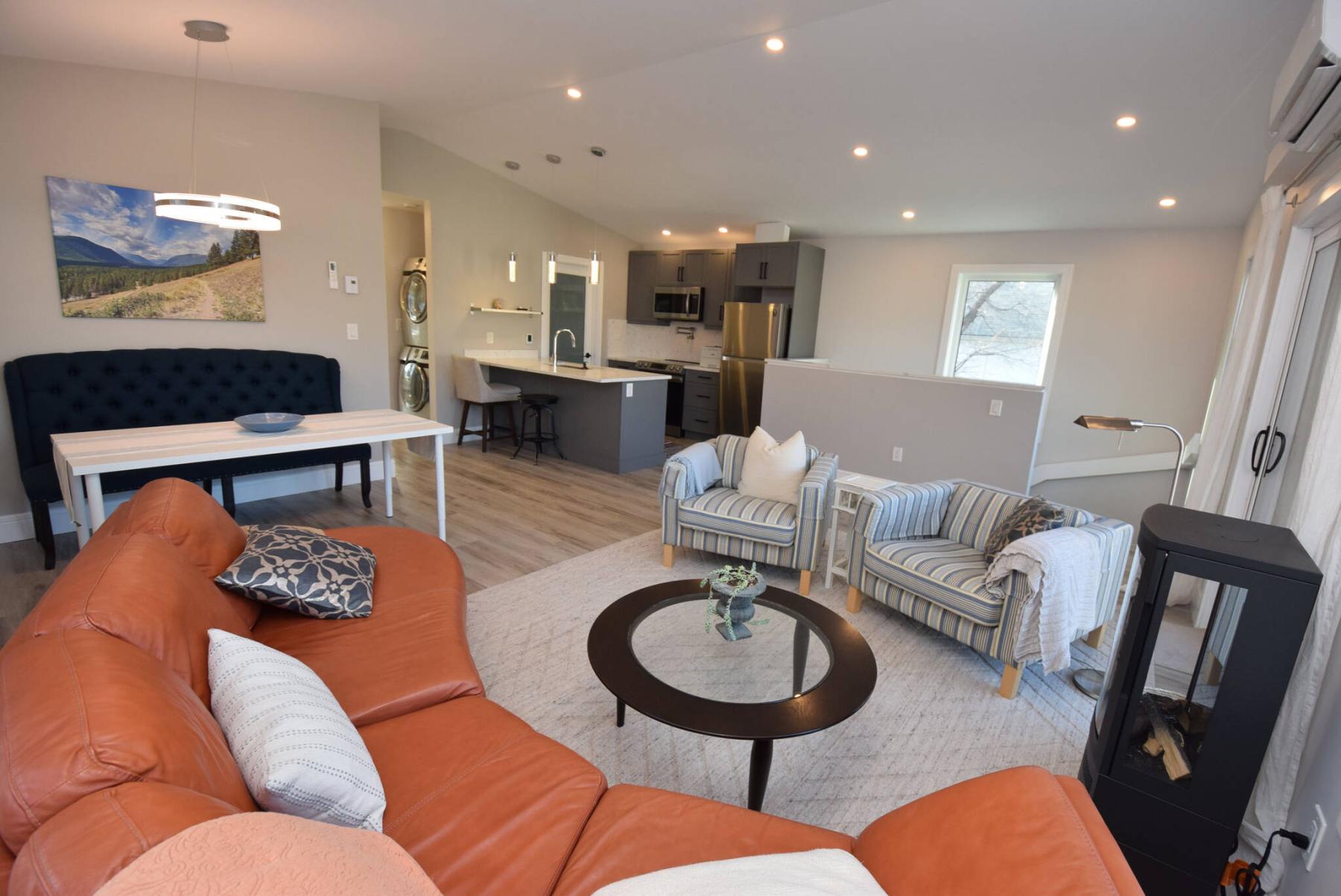Back inside, there are two bedrooms, a gorgeous main bathroom with heated tile flooring and a generous laundry area with full-size washer and dryer.