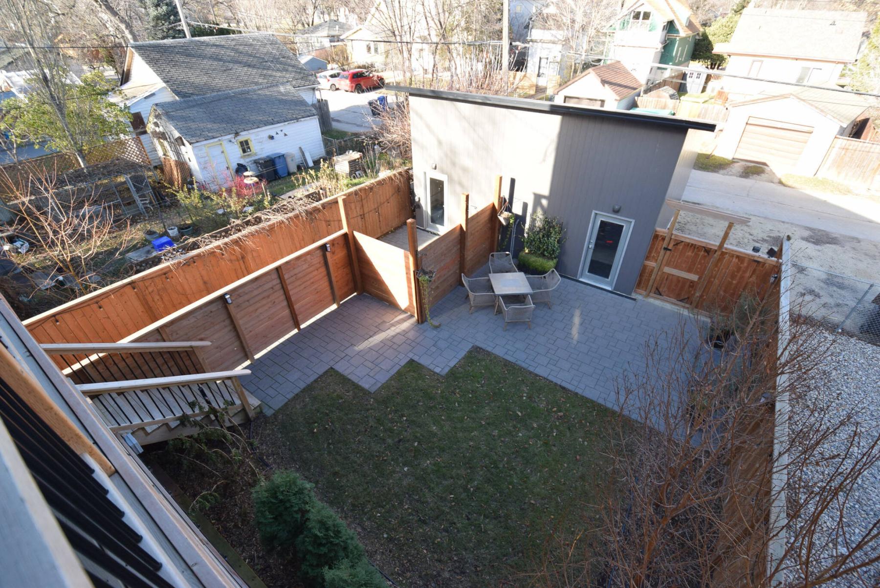 “Again, a patio door on the rear wall leads out to a 24-foot-wide balcony that overlooks the backyard, which was split into two sitting areas. There’s also a steel-framed, 24-by-23-foot custom metal detached double garage in behind,” says Burns.