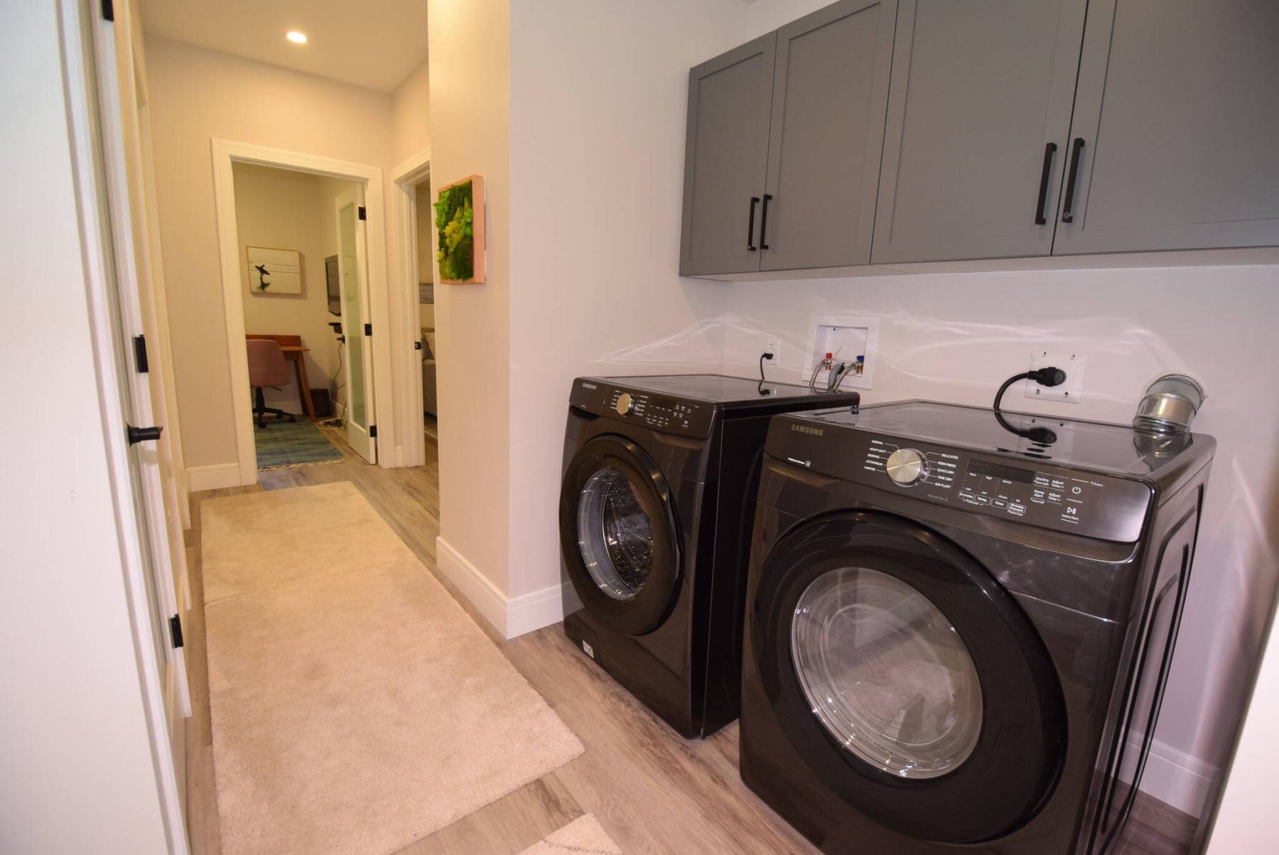 Both the second and upper levels feature generous laundry areas with full-size washers and dryers.