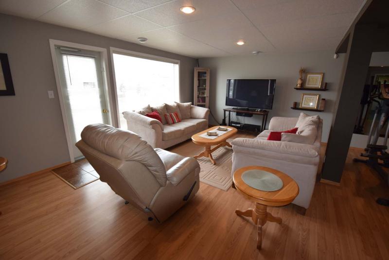 That space turns out to be a 26-foot by 17-foot family room that’s essentially a home on its own. "To the left is an incredible storage space and a two-piece bath," said Wiebe. "To the right is a space that is now being used as an exercise area. Walk further in, and there’s a media room next to a big picture window and patio door that leads to green space out back. Off to the left is an open room that’s currently being used as an office. It could be kept that way or be closed off to create a bedroom. It’s an area that’s ideal for a teenager, or for guests to stay in."