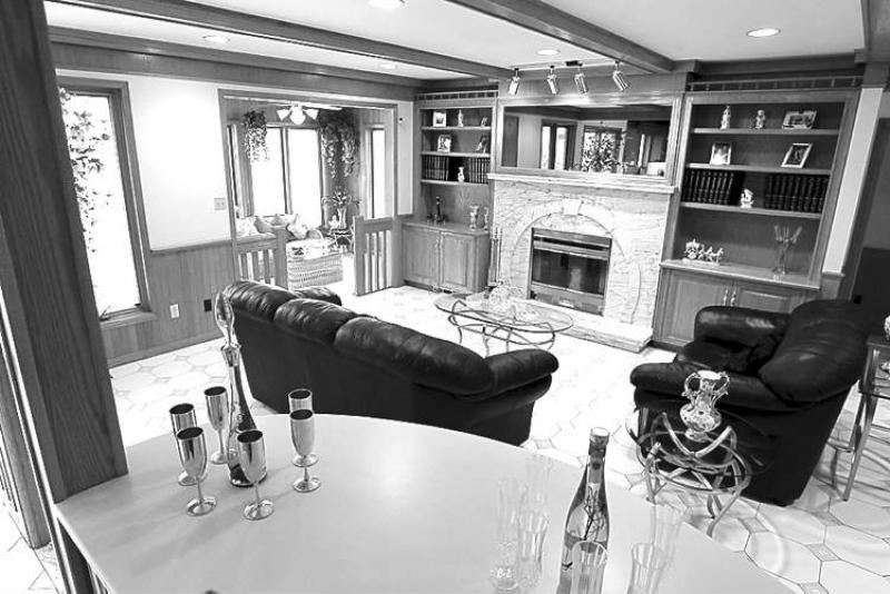 With a wood-burning fireplace framed by more oak woodwork and an elegant carved marble surround, the family room -- which also features a curved wet bar -- makes the great room a great spot to entertain. A four-season sunroom off the family room provides additional space in which to relax, with the backyard and lake in full view.