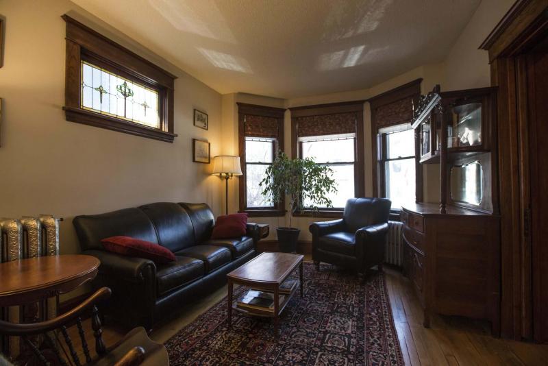 That said, the home is typical in a welcome area, said Neumann. "It just oozes turn-of-the century character, especially on the main floor. Original maple hardwoods run throughout, while there’s 10-inch oak baseboards and gorgeous original oak trim around windows and doors, original oak doors with brass doorknobs, and even original oak pocket doors at the living room’s front entrance and the doorway between the living room and dining room."