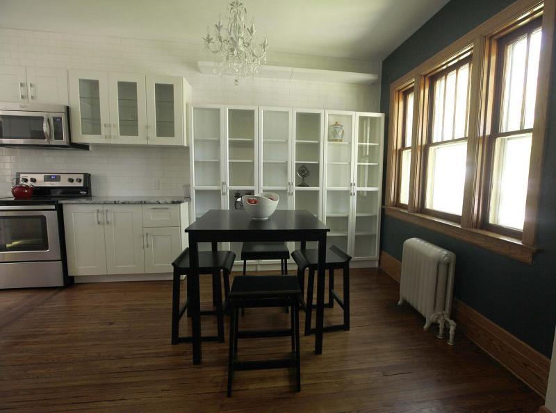 Best of all, light from windows located on the front wall off the dining room and kitchen’s rear wall now flows freely between the two spaces. Not only that, but the kitchen is no longer the size of a postage stamp, as was previously the case.
