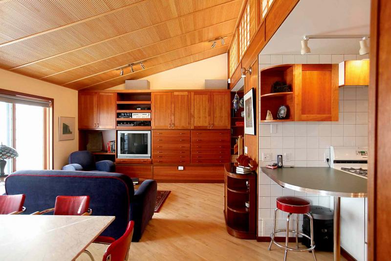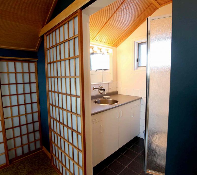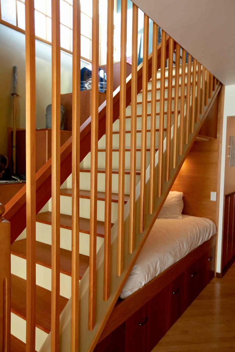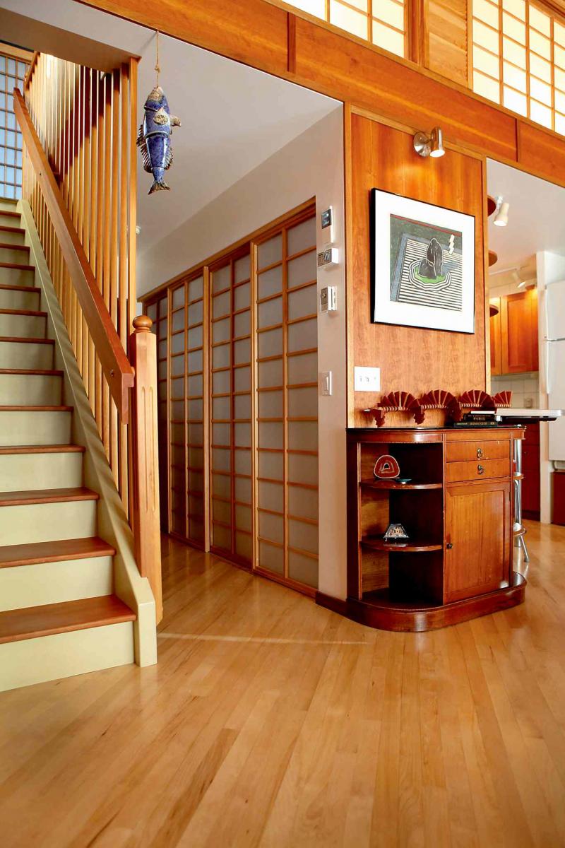 That function extends to a private wing placed between the living room and kitchen. It's an area where the Japanese pursuit of maximizing space is front-and-centre. "Its most prominent feature is a relaxation area (bed with built-in shelving) that was placed in a nook to the side under the stairs," said Kehler. "Opposite it is a (12-foot long by five-foot deep) storage area hidden by sliding shoji panels. To the right is a second bedroom with built-in desk and Murphy bed; to the left is a mechanical/laundry room. There's also a two-piece bath at the end of the hall."