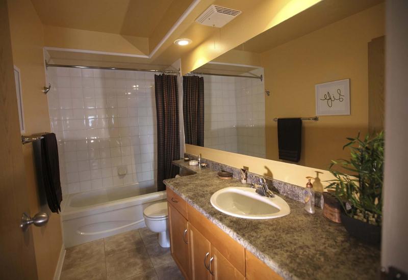 Moreover, the suite was recently updated, said Bedi. "It offers newer laminate plank flooring, paint, light fixtures, a kitchen with maple cabinets and (brown/black) laminate countertops, (tan) dura-ceramic tile flooring and a nicely updated bathroom with dura-ceramic tile floor, maple vanity and tub with tile surround. Appliances in the kitchen (fridge, stove, dishwasher) are newer, as well."