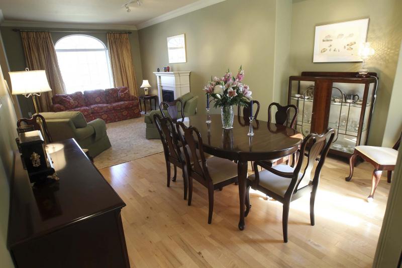 Because the 2,770 sq. ft., two-storey home is only 10 years old, it’s thoroughly contemporary thanks to the outgoing owners’ good taste and foresight, said De Leeuw. "The home features original, upgraded finishes throughout. The flooring that runs through the foyer, hallways, powder room, laundry room, kitchen and dinette is (taupe) tile, while there’s natural maple hardwoods in the dining room, living room and study — and cappuccino maple hardwoods in the family room. All the flooring is very contemporary, and very low-maintenance."
