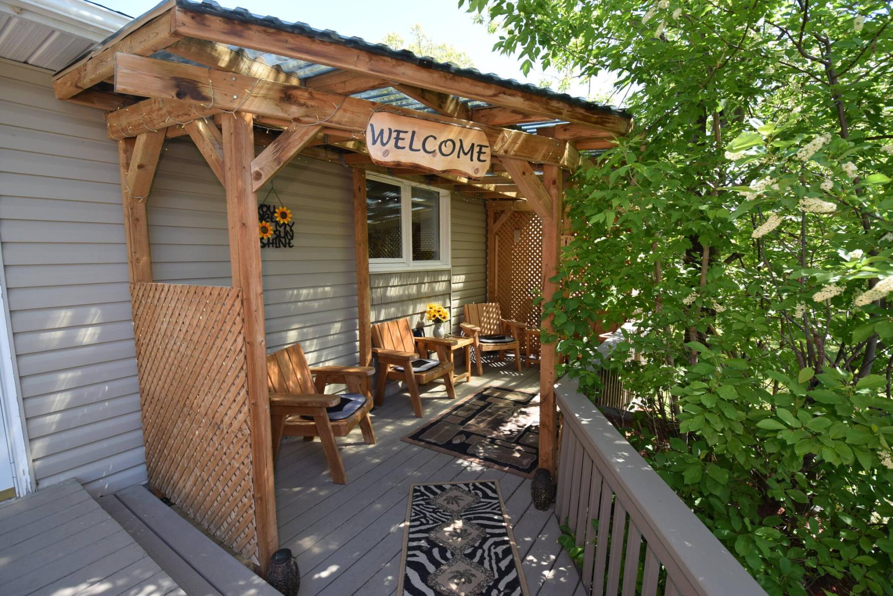 The fetching front porch at 106 Park Ave. in Stonewall beckons you in with its warm, rustic style.
