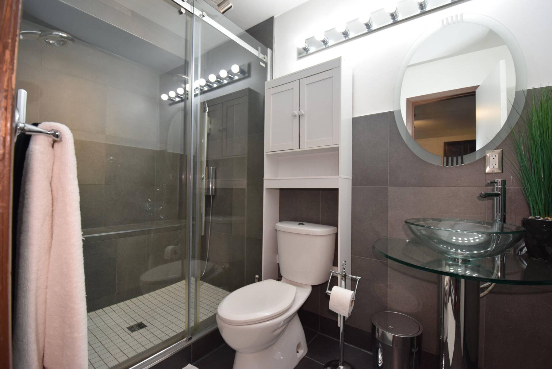 “Like the kitchen, it was meticulously remodelled by the current owner,” he says. “Its focal point is a gorgeous walk-in shower with sliding tempered-glass doors, a two-tone tile surround, tile floor and beautiful glass-vessel sink. It has a very luxurious, custom feel to it.”
