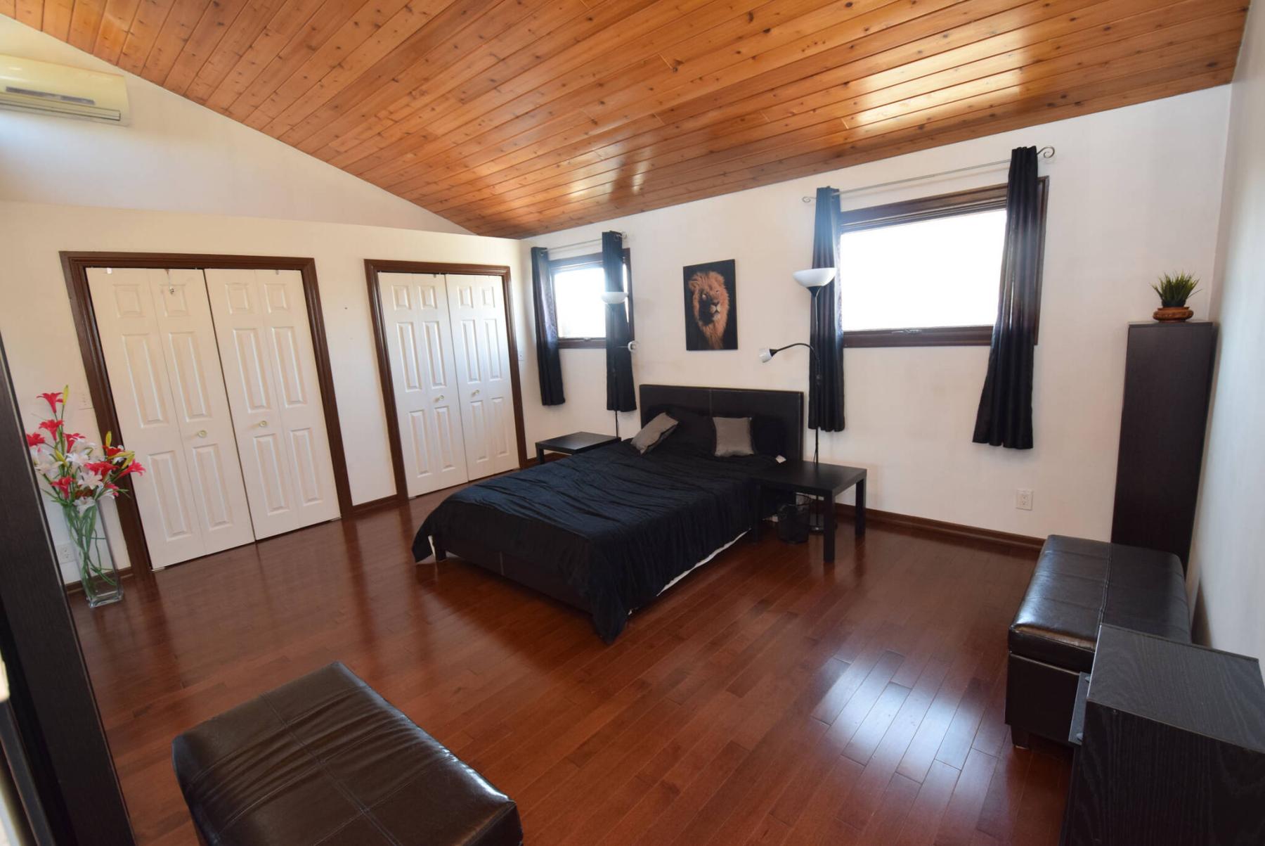 “Upstairs, a massive loft bedroom awaits,” says Benger. “The vaulted ceiling gives it a wonderful feeling of space, two large windows let in tons of natural light and a pair of double closets provide ample storage space. The cappuccino hardwoods were carried upstairs for good measure.”