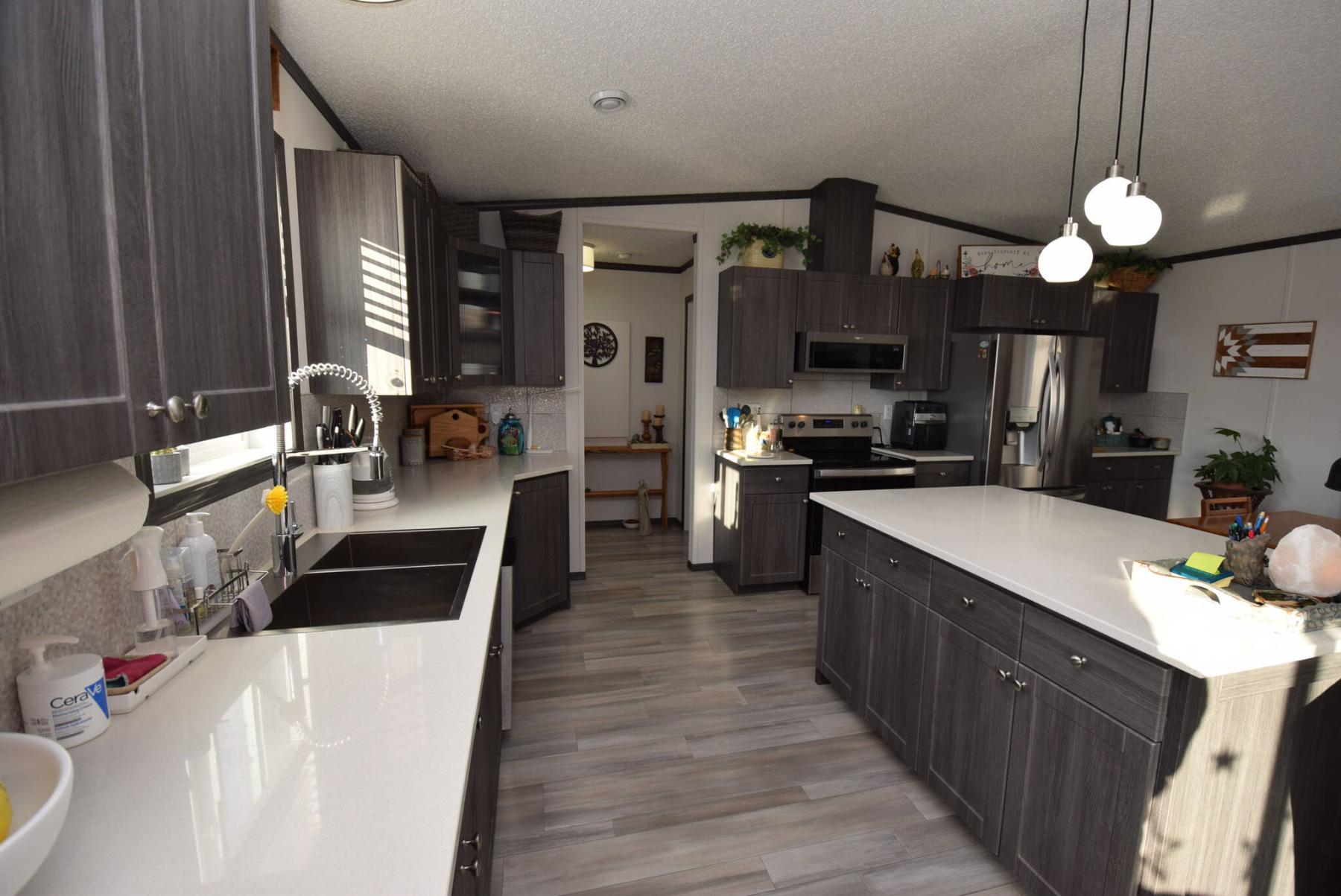 “This is a very well-maintained and gently used three-bedroom, two bath custom-designed modular home,” he says of the like-new four-year-old residence. “It features solid two-by-four wood-frame construction and is very well-built. It’s also beautifully designed throughout, offering tremendous utility and style.”
