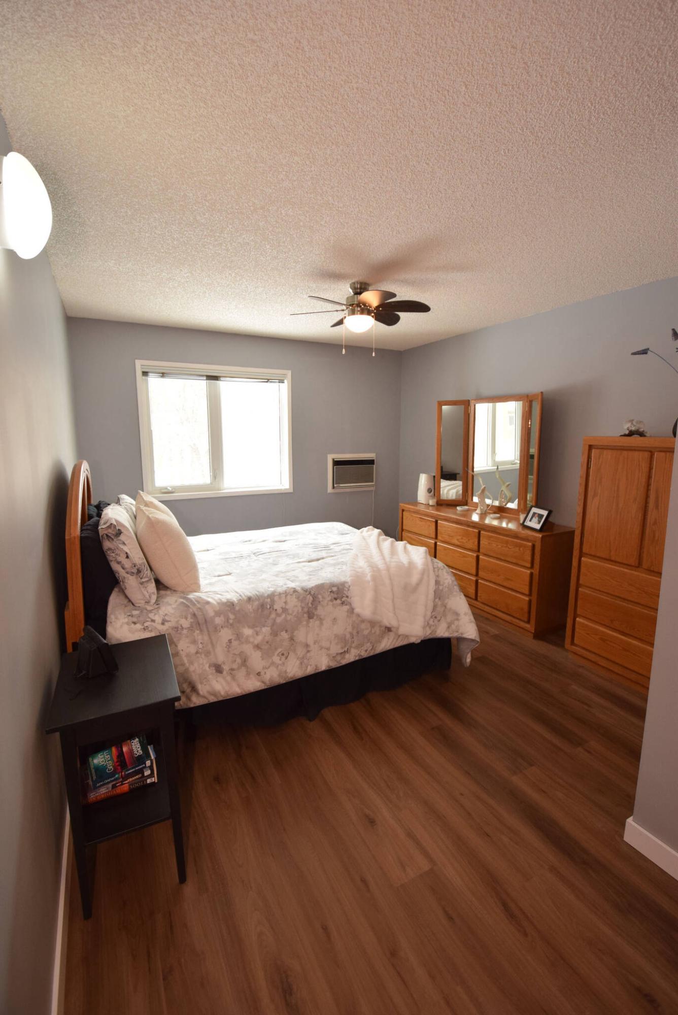 The primary bedroom is big, bright and very private.