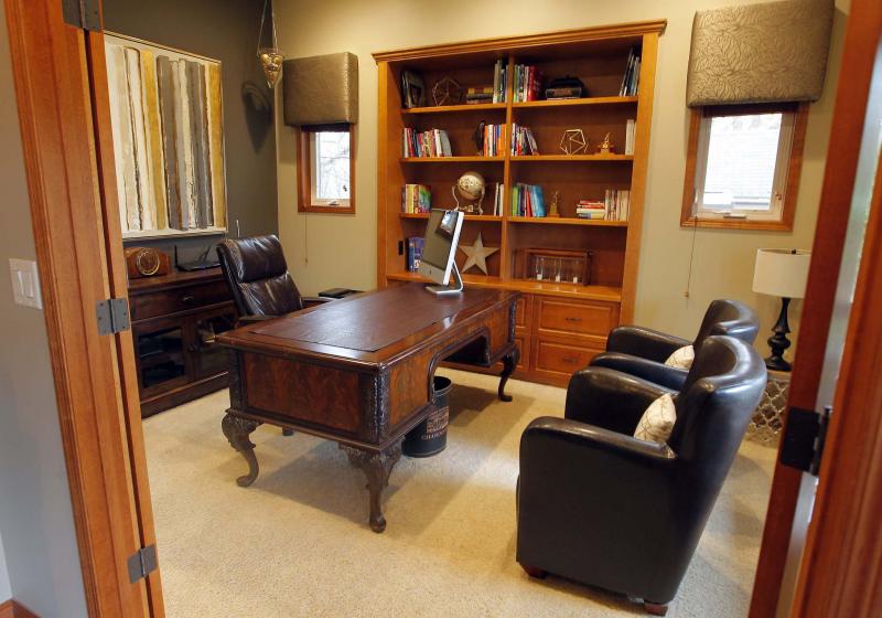 Step inside and a wide foyer with a rich slate tile floor and a cultured stone wall with curved gas fireplace to its left are nice touches. And as it turns out, that’s just the start of this meticulously maintained, fabulously finished house that received a major facelift (by Somerville Design Homes) in 2004-05.