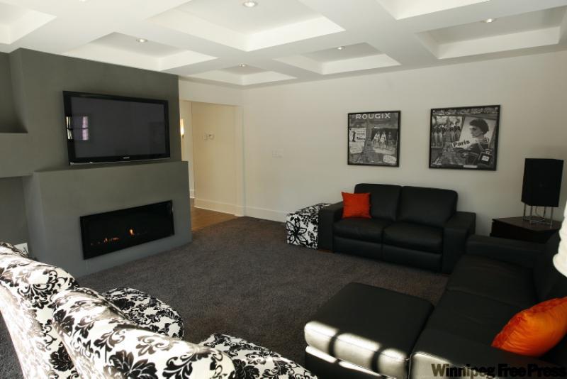 "The rear of the home is where all the major renovations happened," says Williams. "The family room, with all its windows and grey feature wall with Cosmo SLR direct vent gas fireplace is a great place to hang out and watch TV. There's also a gorgeous three-piece main floor spa bath next to it with heated floor, contemporary vanity and oversize shower with Kohler rain shower head."