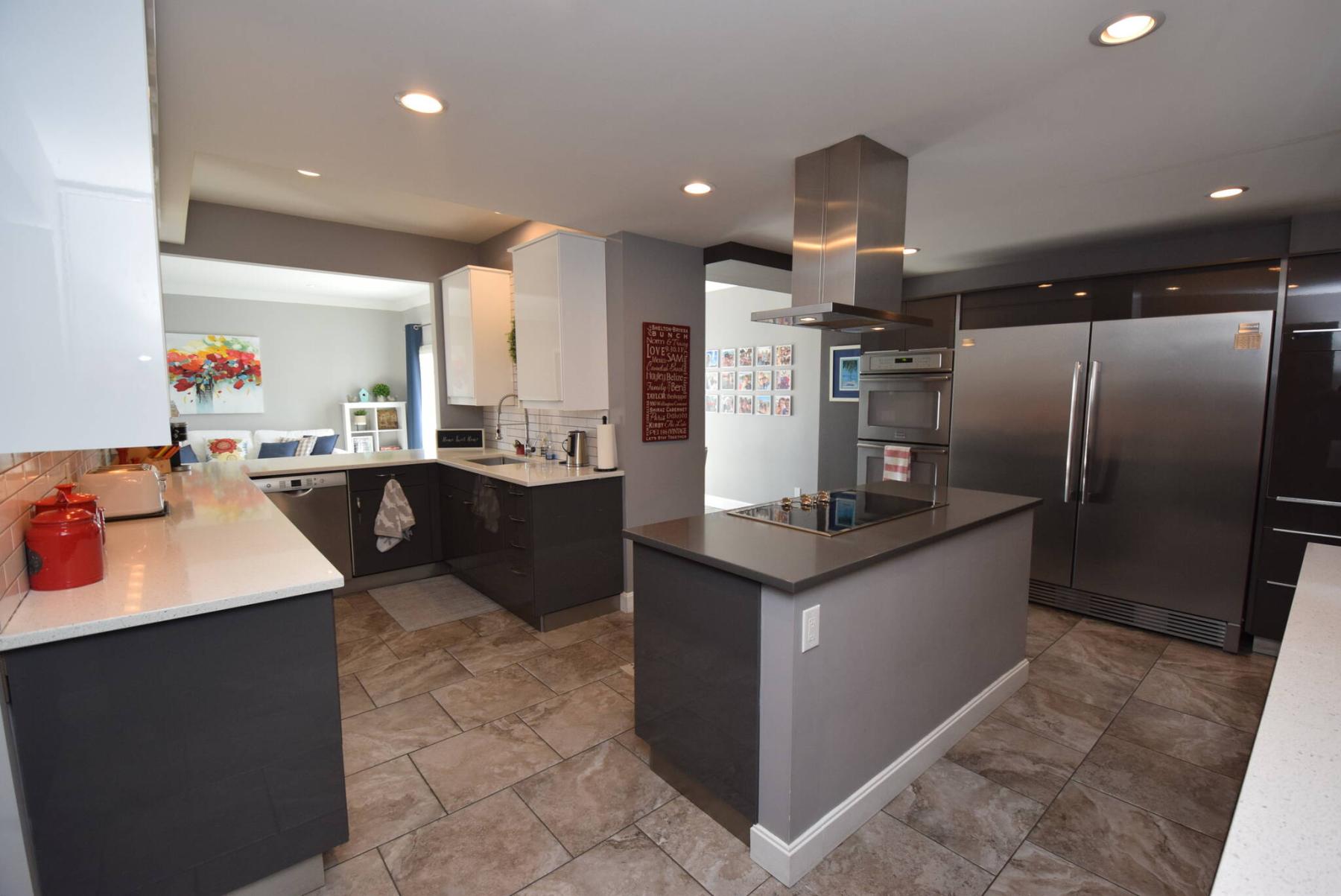 “The kitchen is awesome,” he says. “It’s not something you always get in River Heights. There’s tons of space to create, and the finishes – heated tile floor, quartz countertops, loads of white and grey glossy cabinets and high-end stainless appliances – are gorgeous. A cutout behind the island on its rear wall opens it up to the second family room and dining room.”