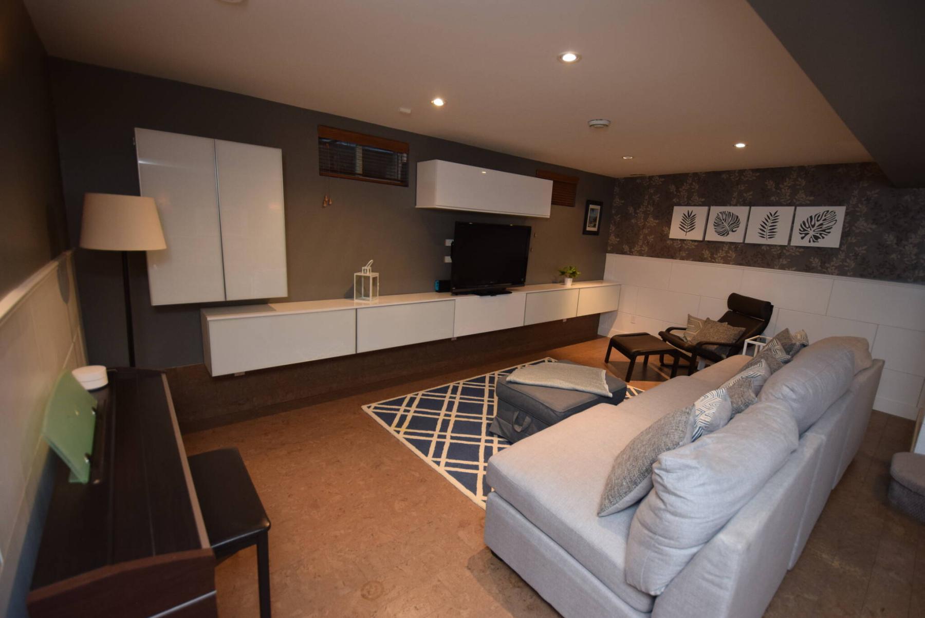 “The basement beneath the addition at the back of the home offers lots of storage space, plus an area close to the back door that makes a perfect spot to put coats and boots. The basement under the original part of the home is awesome, offering cork flooring, a media area with wet bar, flex space, a luxurious three-piece bath, huge laundry room and a utility/storage room.”