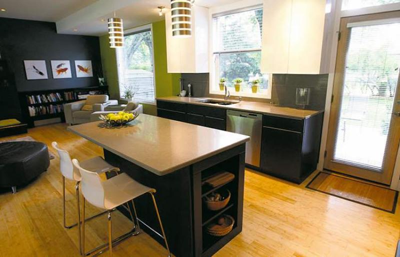 "The light bamboo floors are absolutely gorgeous, while other quality materials -- granite flooring (in the foyer), quartz countertops (a warm shade of grey), glossy white cabinets, grey drawers and a textured cement-tile backsplash lend a modern look to the kitchen. It is also highly functional, with its island (with seating for two) and wealth of cabinets and drawers," King said.