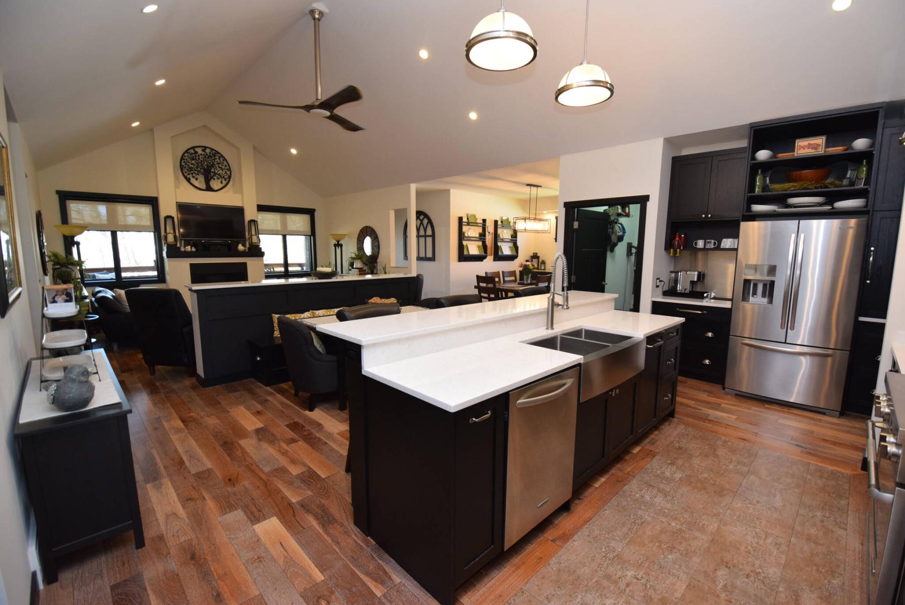 Meanwhile, a one-third wall with quartz capping deftly defines the kitchen and dinette area from the great room, creating a sense of definition without disrupting flow.