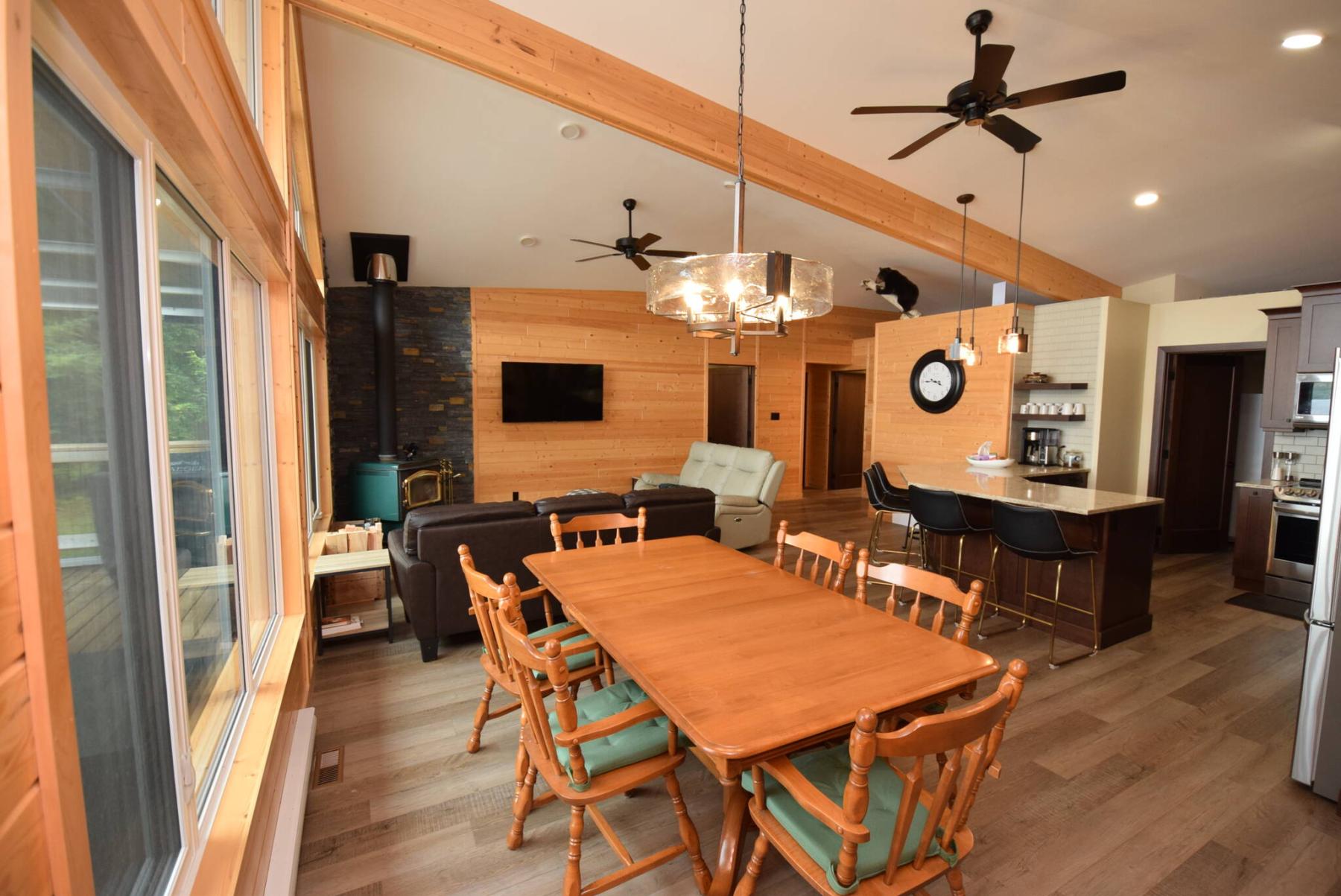 “It finishes of the area perfectly with its amazing lake view and a wood burning stove with a gorgeous tile backdrop.”