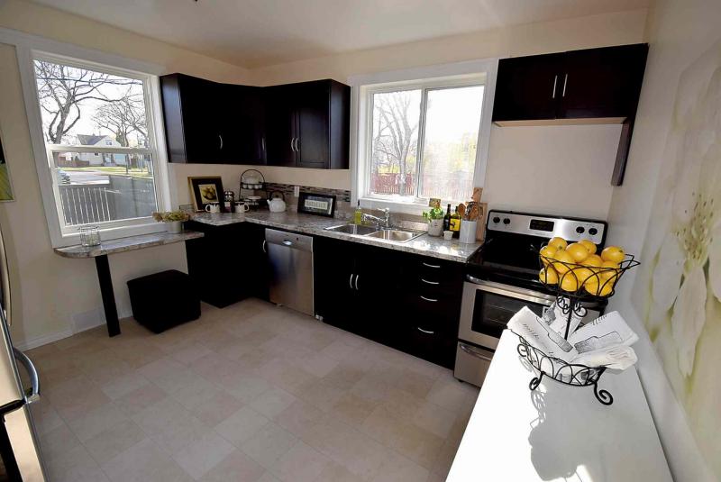 That's simply not the case with 398 Centennial, said Mackie. "This home's kitchen is just wonderful. It has two windows that let in all kinds of light, and it has new vinyl flooring, new espresso cabinets, new taupe laminate countertops and new stainless steel appliances. There's even a built-in eating nook by one of the windows. And the windows -- as is the case throughout the entire home -- are also brand-new."