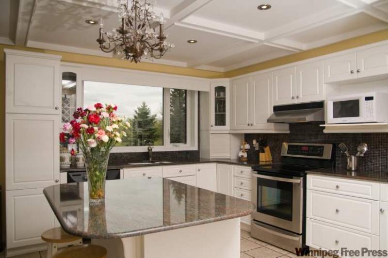 "It's a touch that simply finishes off the area," says De Leeuw. "The outgoing owners had a new white-beamed ceiling installed complete with pot lights and a surround sound system. It really defines and adds style to the kitchen and, at the same time, they also had the stippled ceilings removed in the great room, living room, dining room, sunroom, main floor den and master bedroom to make for a higher finishing quality."