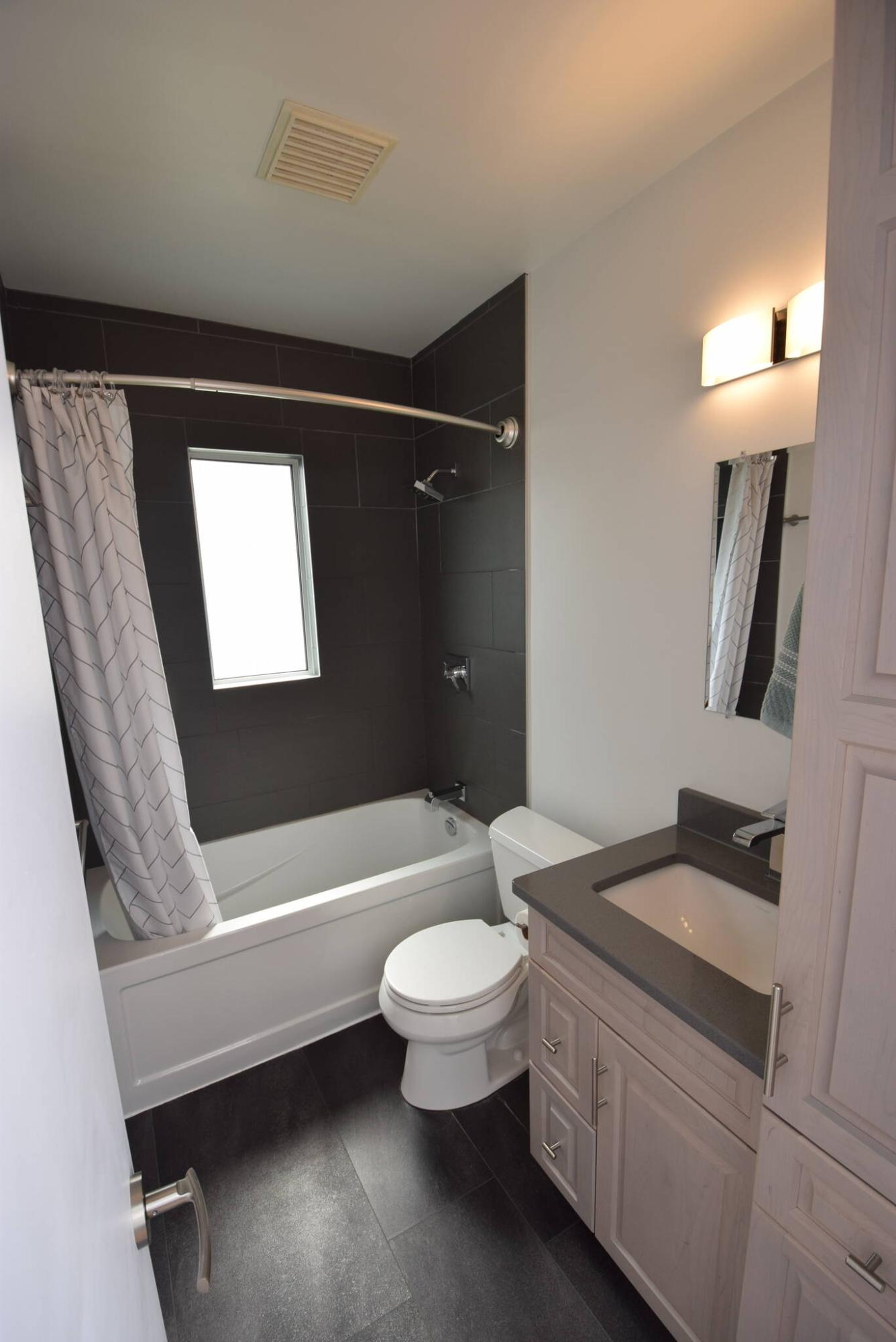 “It was beautifully updated with luxury vinyl tile flooring, a soaker tub with grey tile surround, new shower fixtures and a new vanity with black granite countertop and modern faucet,” he says. “It provides a nice touch of luxury.”