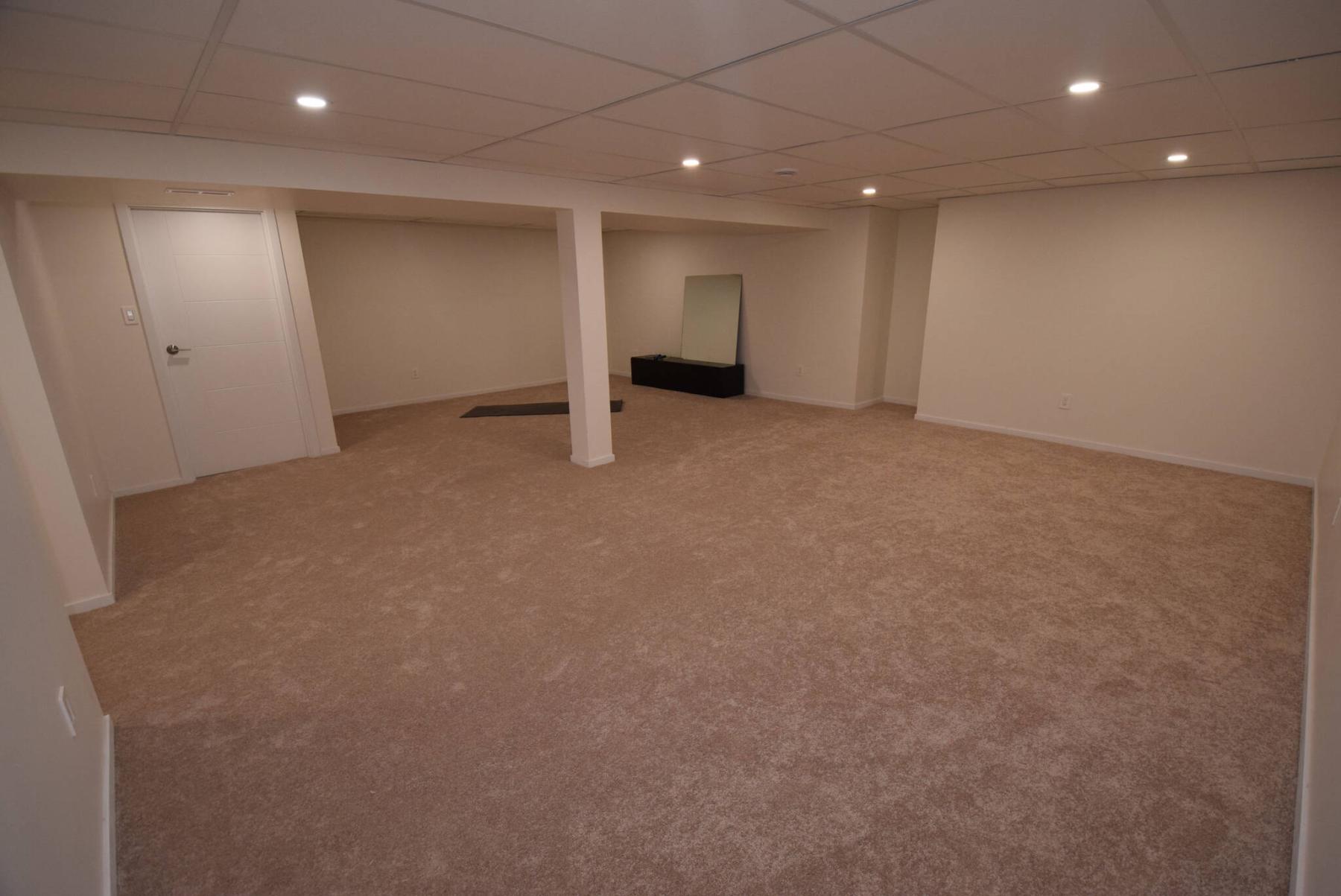 A massive space, the lower-level rec room can easily accommodate a media or games area.