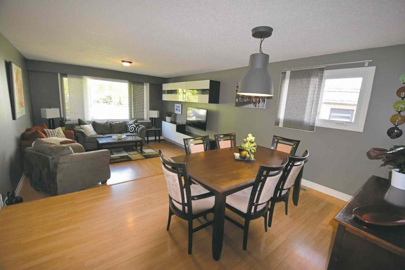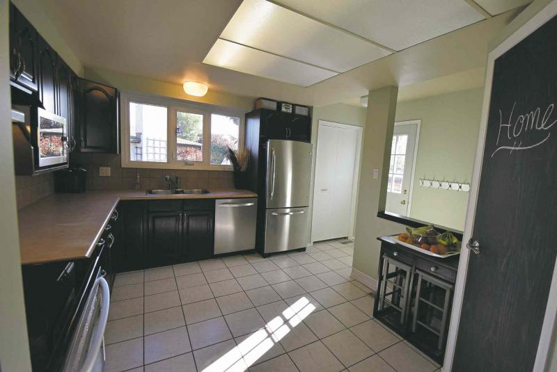 The same could be said for the kitchen, which again feels roomier than its listed size. It's also no relic of the '70s or '80s, added Vasko. "It's an area that's been nicely looked after and that isn't dated -- all its features are quite contemporary. It has a taupe tile floor, dark (cappuccino) oak cabinets, brown laminate countertops, a corner pantry, and a big (three-piece) window over the (double) sink lets in all kinds of natural light. The wall next to the back door has also been cut out, which opens the kitchen up even more."