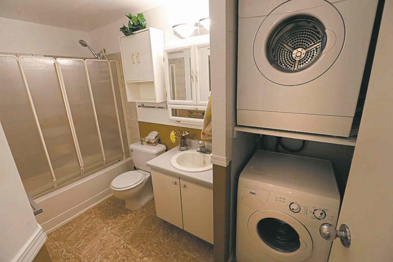 The four-piece bath also houses another handy feature. "This unit also comes with in-suite laundry that's hidden behind bi-fold doors," MacAngus said. "The (front-loading) washer and dryer are newer, too."