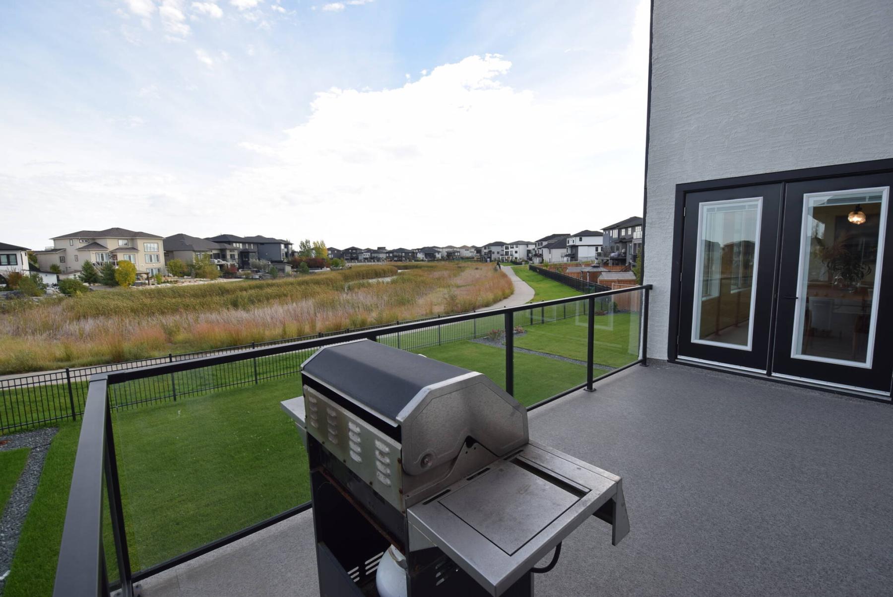 “The great room is spectacular — it’s grand and is filled with light but is still cosy. The kitchen is a true showpiece, featuring quartz countertops, a pantry with custom cabinetry … and a double stainless fridge designed for everyday living and entertaining. There’s also a patio door next to the dining area that leads out to a large backyard deck that overlooks the water.”