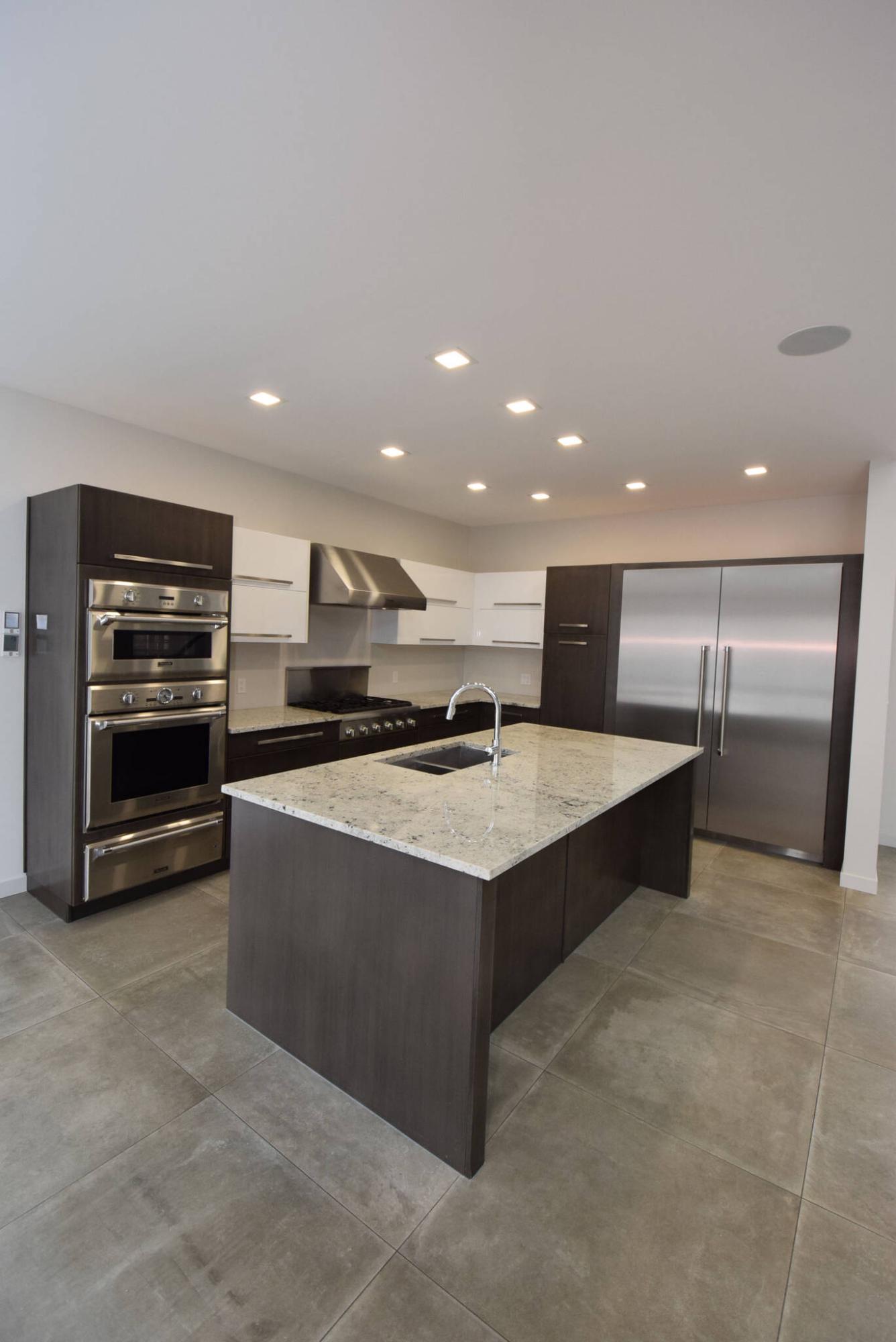 “It’s truly a chef-inspired space,” says Castelane. “A large granite island offers seating for four next to a spacious dining area and is equipped with awesome Thermador appliances. The great room, with its high ceiling, floor-to-ceiling windows and simple but stunning feature wall with fireplace and TV nook is ideal for entertaining.”
