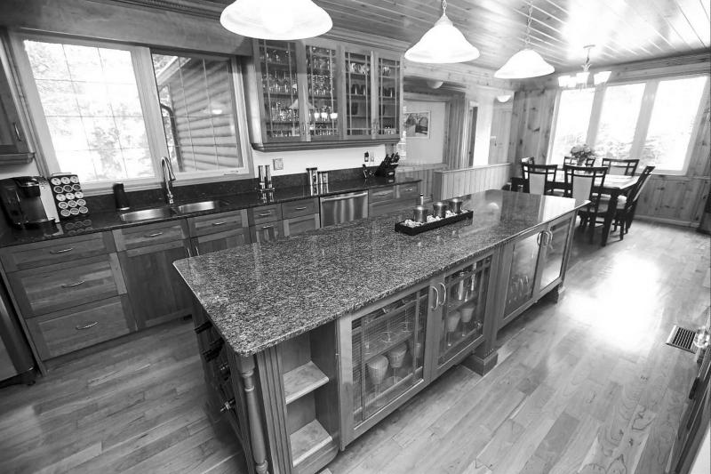 "With all the knotty pine walls (and ceilings) -- they're not panelling, they're actual wood -- you feel as if you've stepped inside a lodge," he said. "The home's warm, rustic feel is very welcoming and just draws you inside."