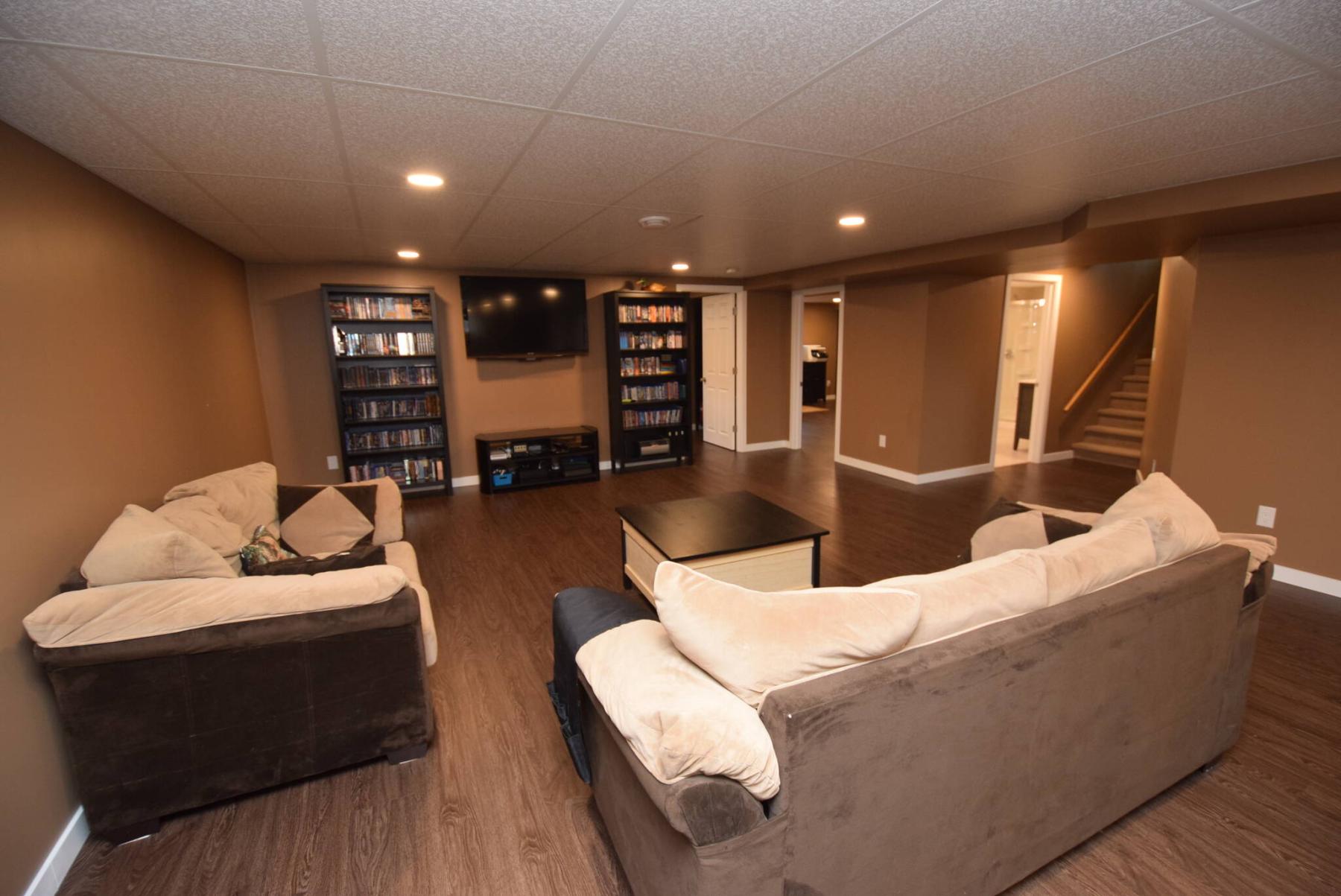 “It was recently finished with proper permits,” says Queen. “It adds approximately 1,400 sq. ft. more livable space to the home with two huge bedrooms, a large rec room, three-piece bath, and amazing storage. The quality of the finish is impressive, with Dri-Core sub floor and spray foam insulation.”