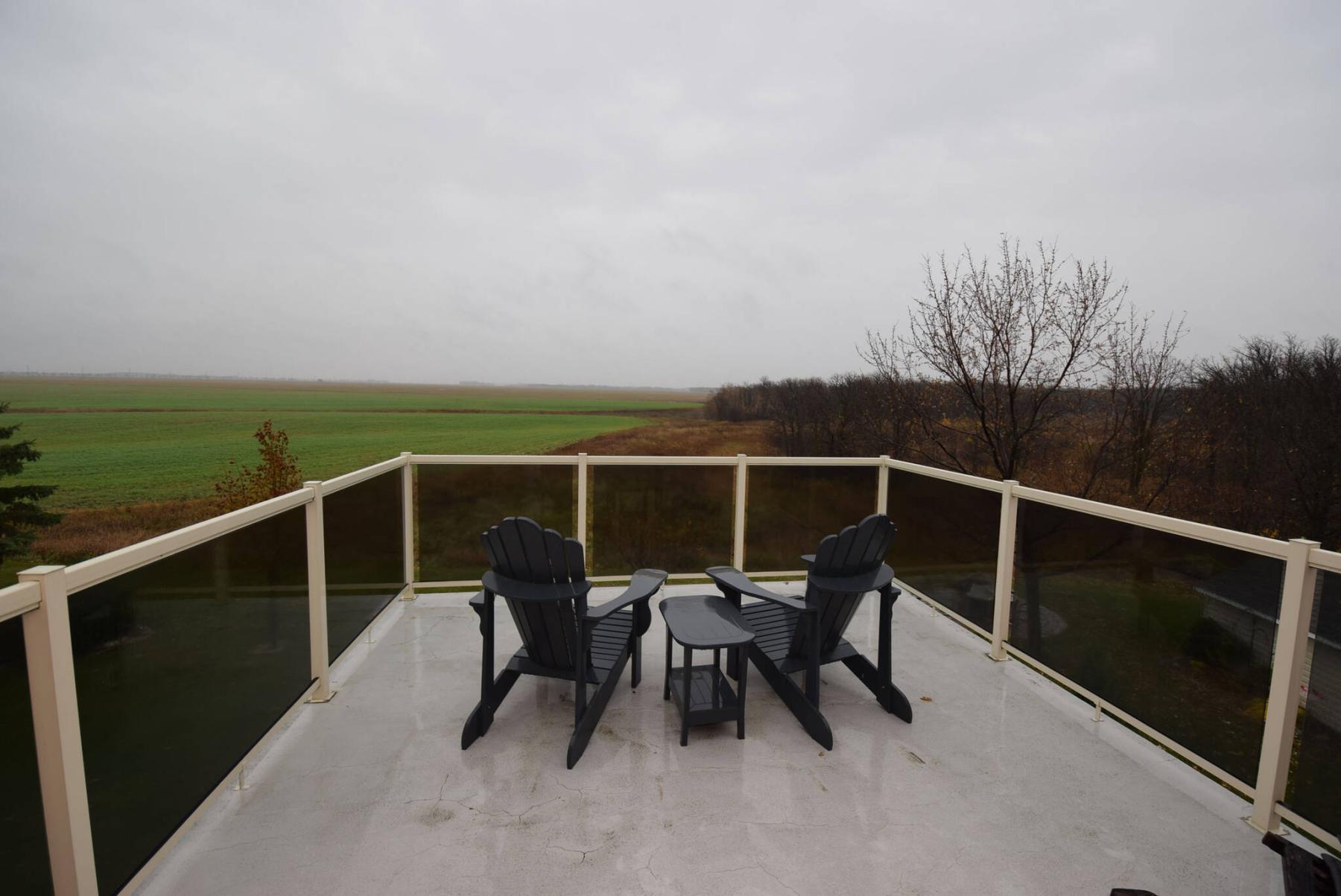 Serenity pervades the privately positioned primary bedroom, which features access via a patio door to an elevated balcony overlooking the yard and neighbouring grasslands.
