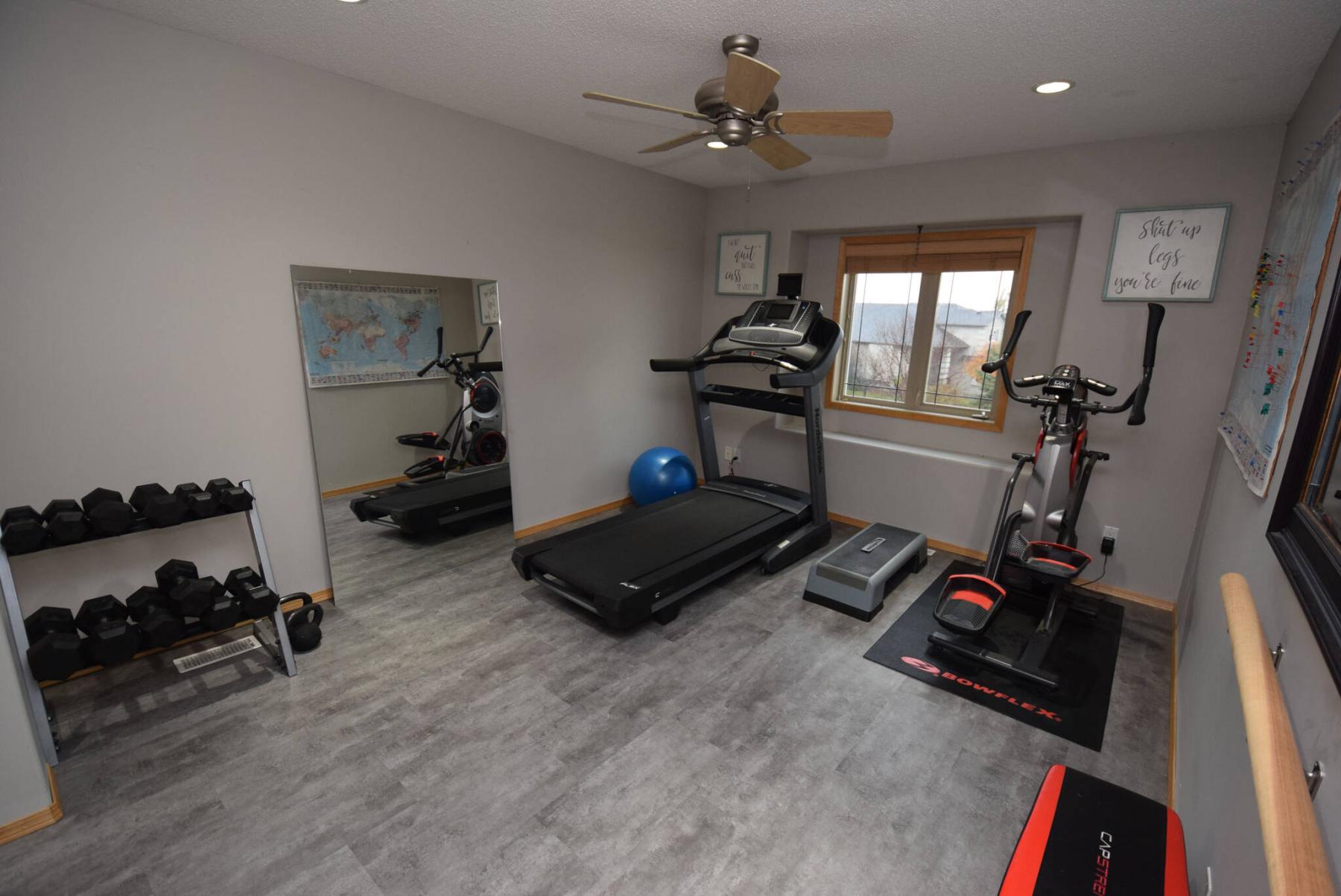 Currently being used as a home gym, the second-floor bonus room could also be used as a bedroom, media area or office.