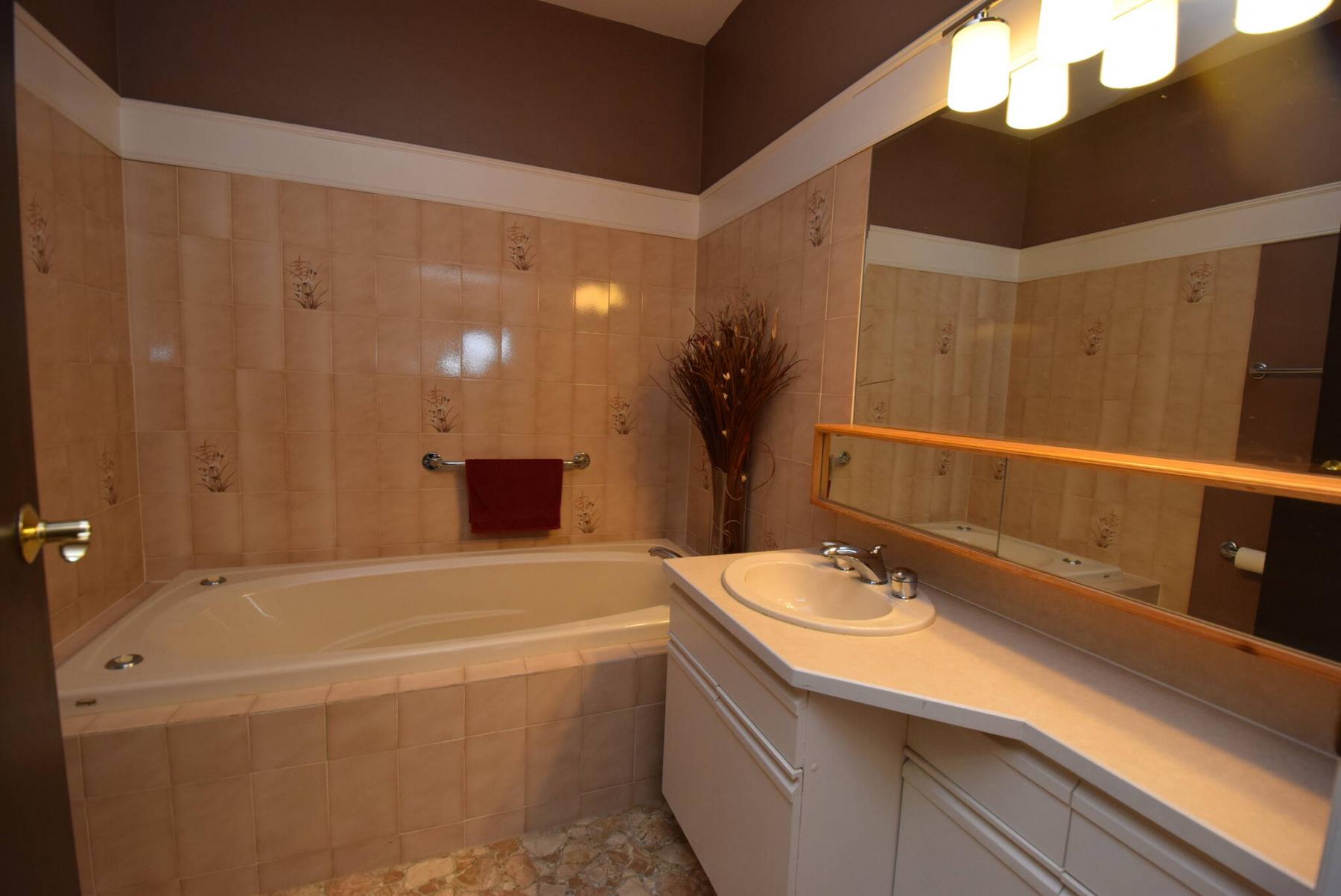 Storage space can be an issue in condos, but it isnt here, Davis says. There are two large closets, including one that holds the washer and dryer, shelving, built-in drawers and extra storage space. The main bath offers a jetted soaker tub with a tile surround and tiled front.