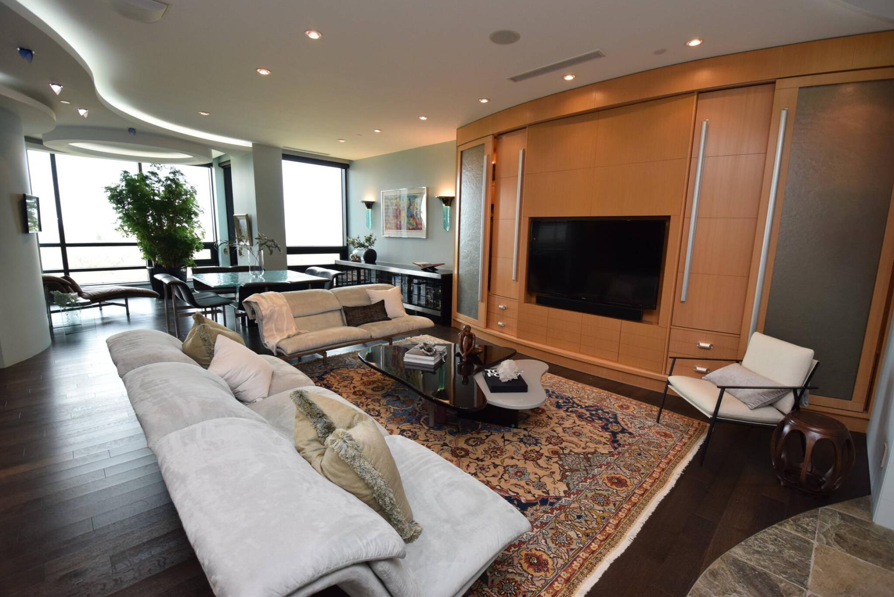 From there, the sprawling unit’s main living opens up in an efficient, well-organized — and thoroughly luxurious — style.