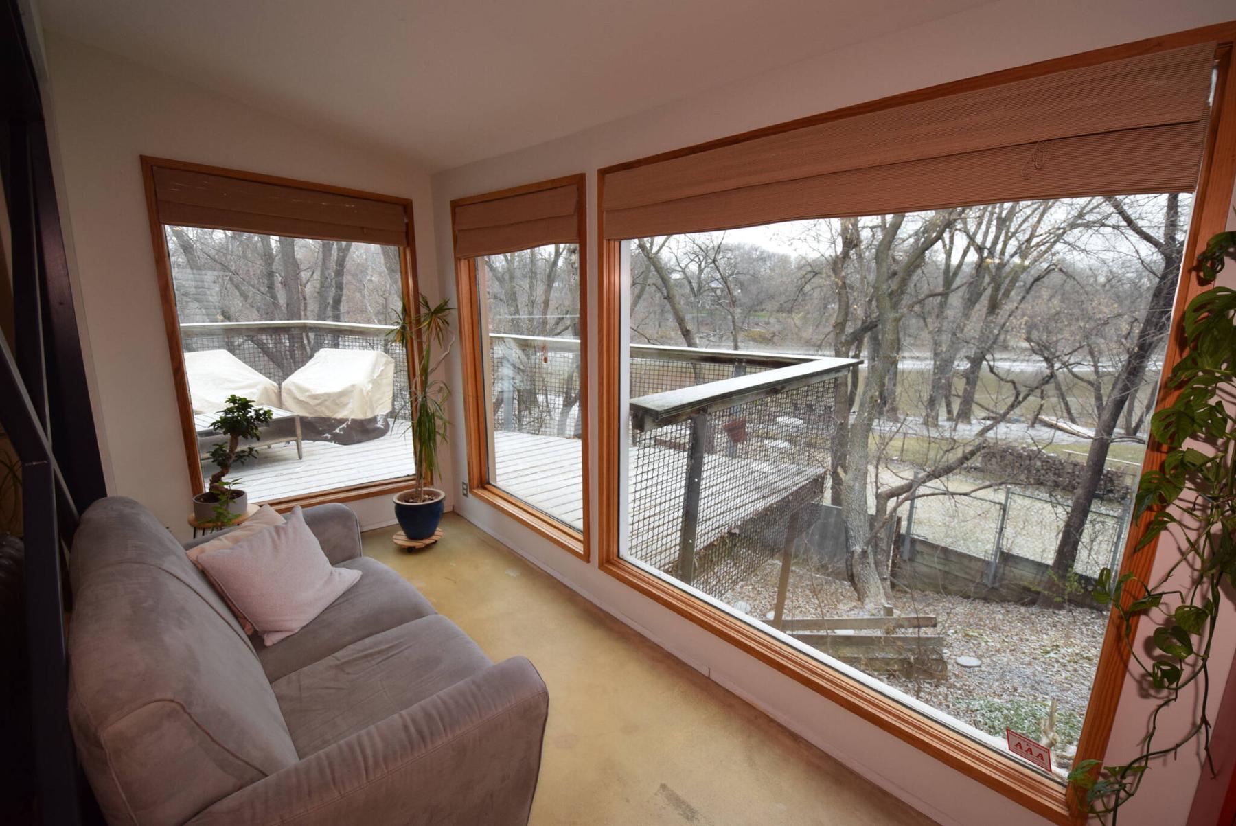 Second, it’s next to a mature city park on a well-treed corner lot that looks out onto the fast-moving waters of the Assiniboine River.