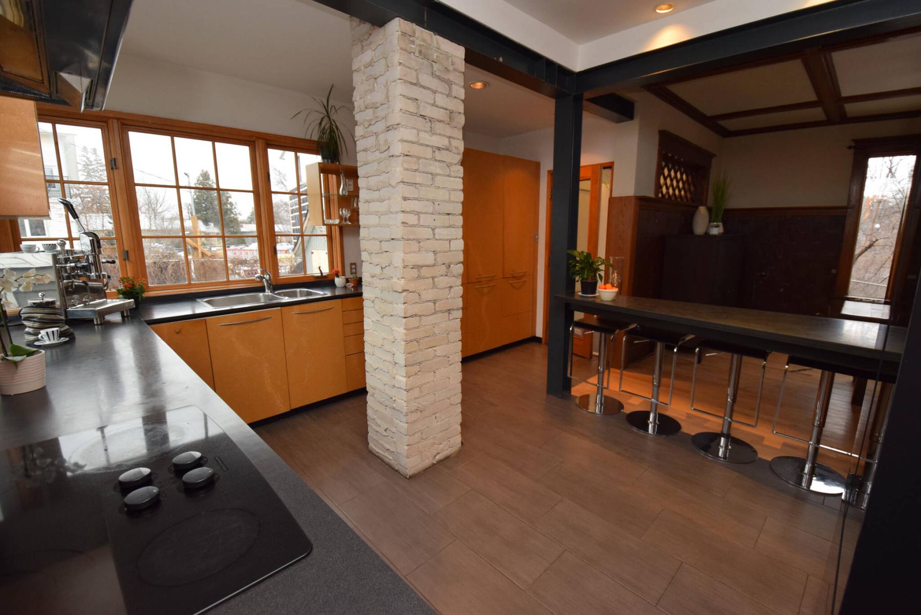 Tucked away at the end of a dead-end street next to a park and the Assiniboine River, the 111-year-old residence offers gorgeous tree and river views.