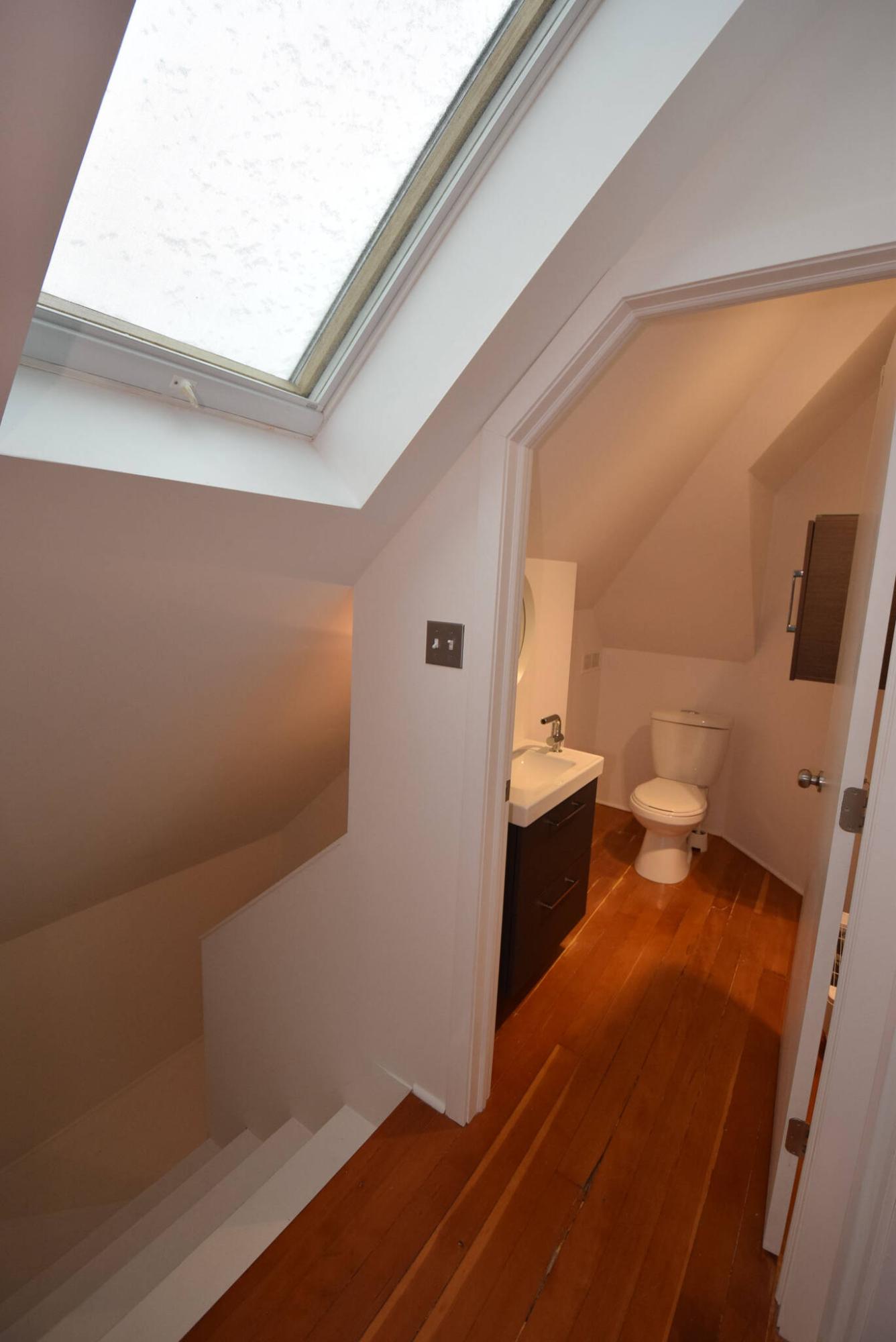 Modern meets traditional on the third floor, where a skylight and remodelled bathroom serve as contemporary counterpoints to original fir hardwoods.