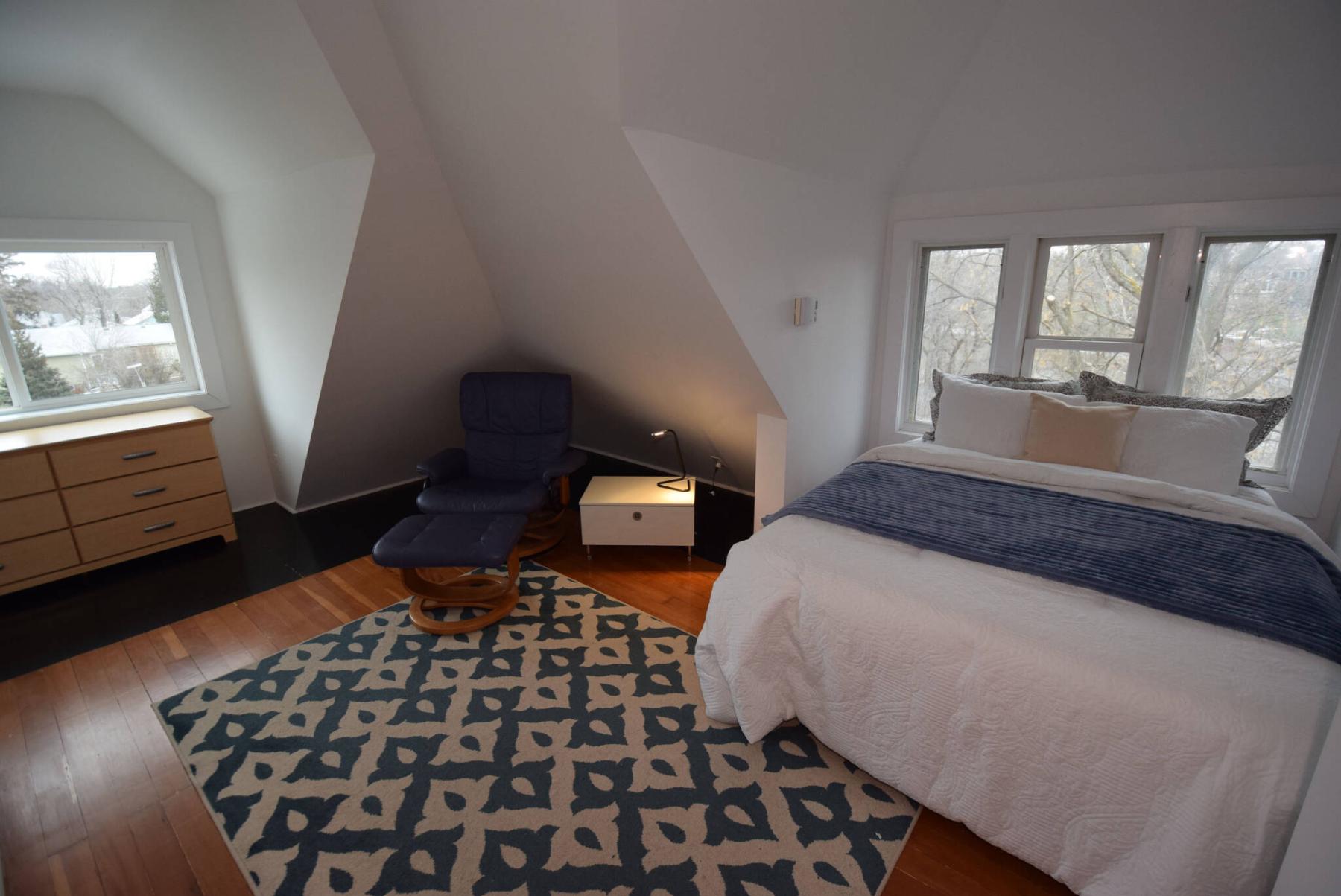 The home has two third-floor bedrooms that could serve as a master suite; the larger offering a cosy reading nook and treetop/river view.