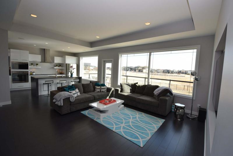 He adds the finishes in the great room give it a modern, yet warm feel.