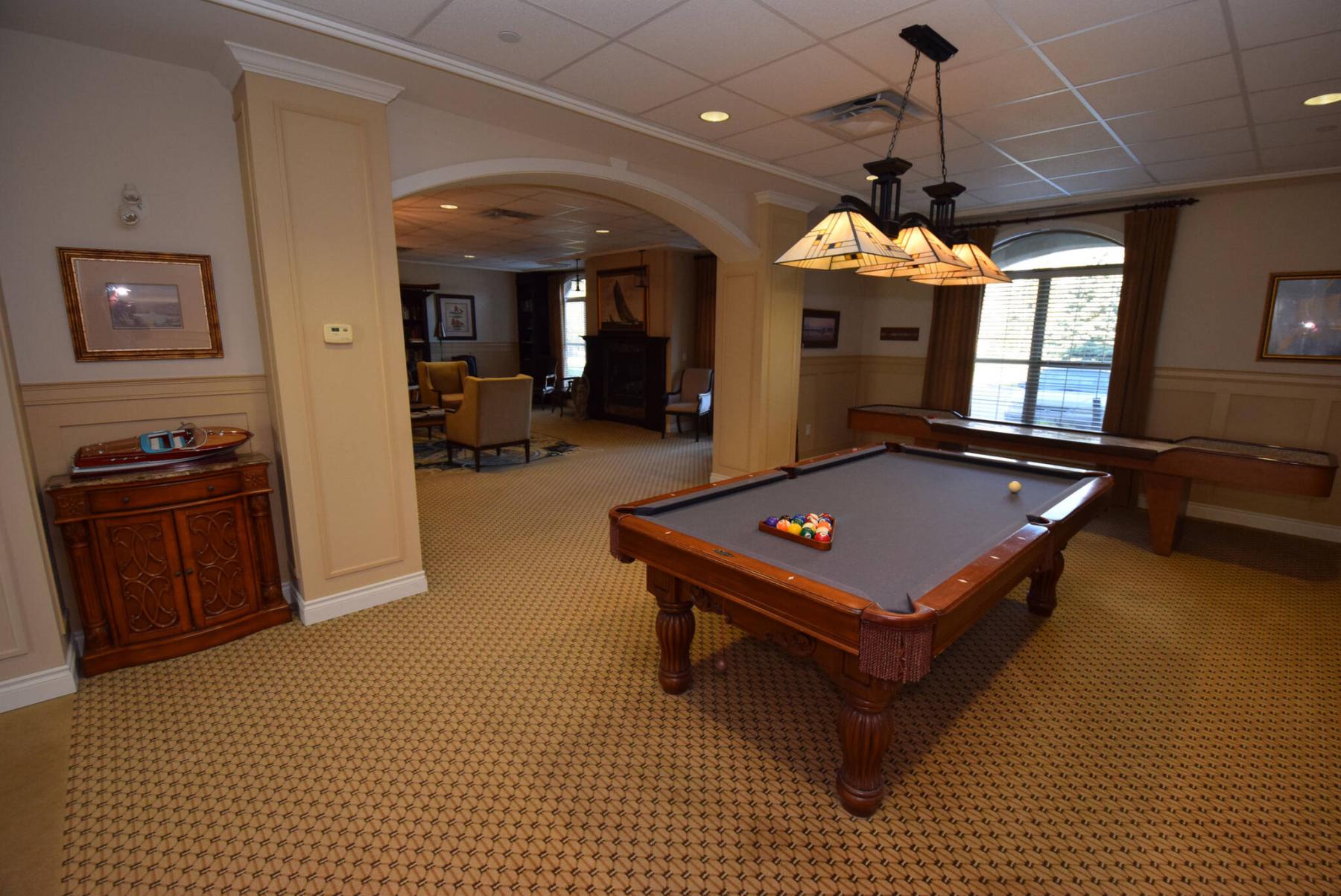 A games area with pool table is just part of a main floor offering a salon, gym, movie theatre, bistro and more.