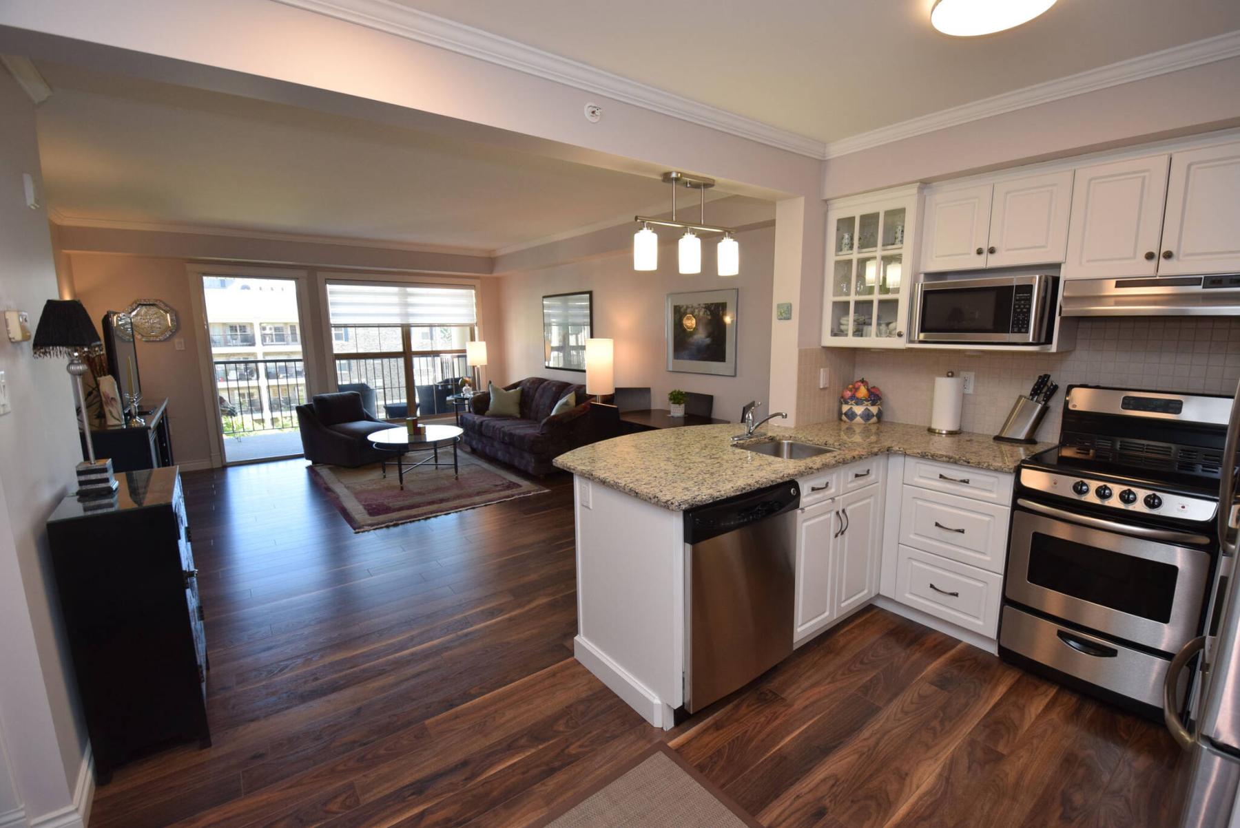 “It comes with granite countertops, a tile backsplash, lots of white cabinets and stainless-steel appliances,” she says. “It’s large enough to be functional but not so large that it takes up too much space. There’s room to put in a table and chairs next to it, a feature you don’t often see in one-bedroom suites this size.”