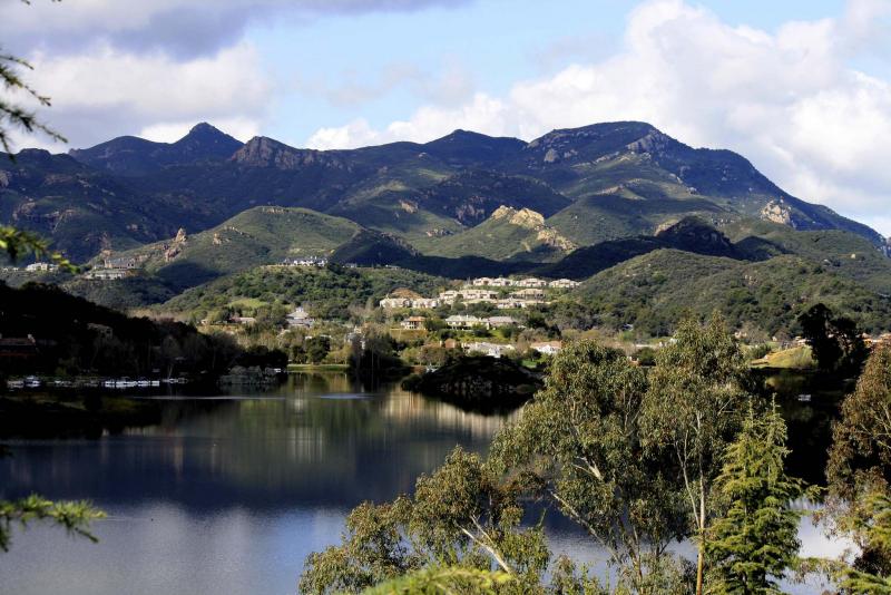 The Lake Sherwood home of late rocker Tom Petty sits at the end of a cul-de-sac and has 125 feet of lake frontage. Locally sourced fieldstone walls and exposed beams give the 5,300-square-foot home, listed for $5.495 million, an Old World vibe. Petty, who died last year at 66, bought the home a little over a decade ago for about $4.41 million. (Compass)